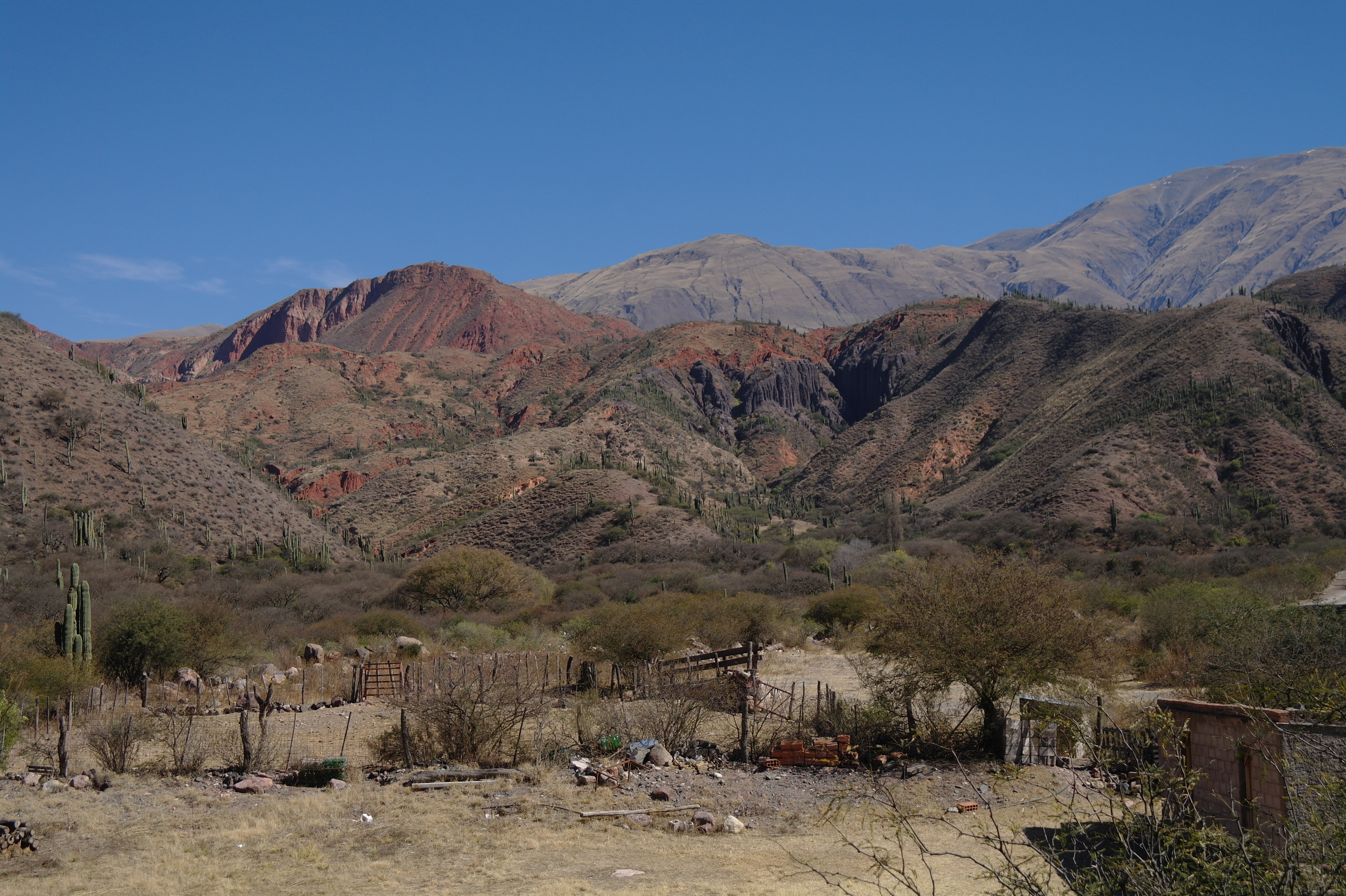 Evidemment, à ce rythme de bon touriste enthousiaste, on ne risquait pas d’atteindre le village de Cafayate comme on l’avait plus ou moins prévu, et du coup en arrivant dans le minuscule village d’Angastaco vers 17h, on décide d’y rester pour la nuit.