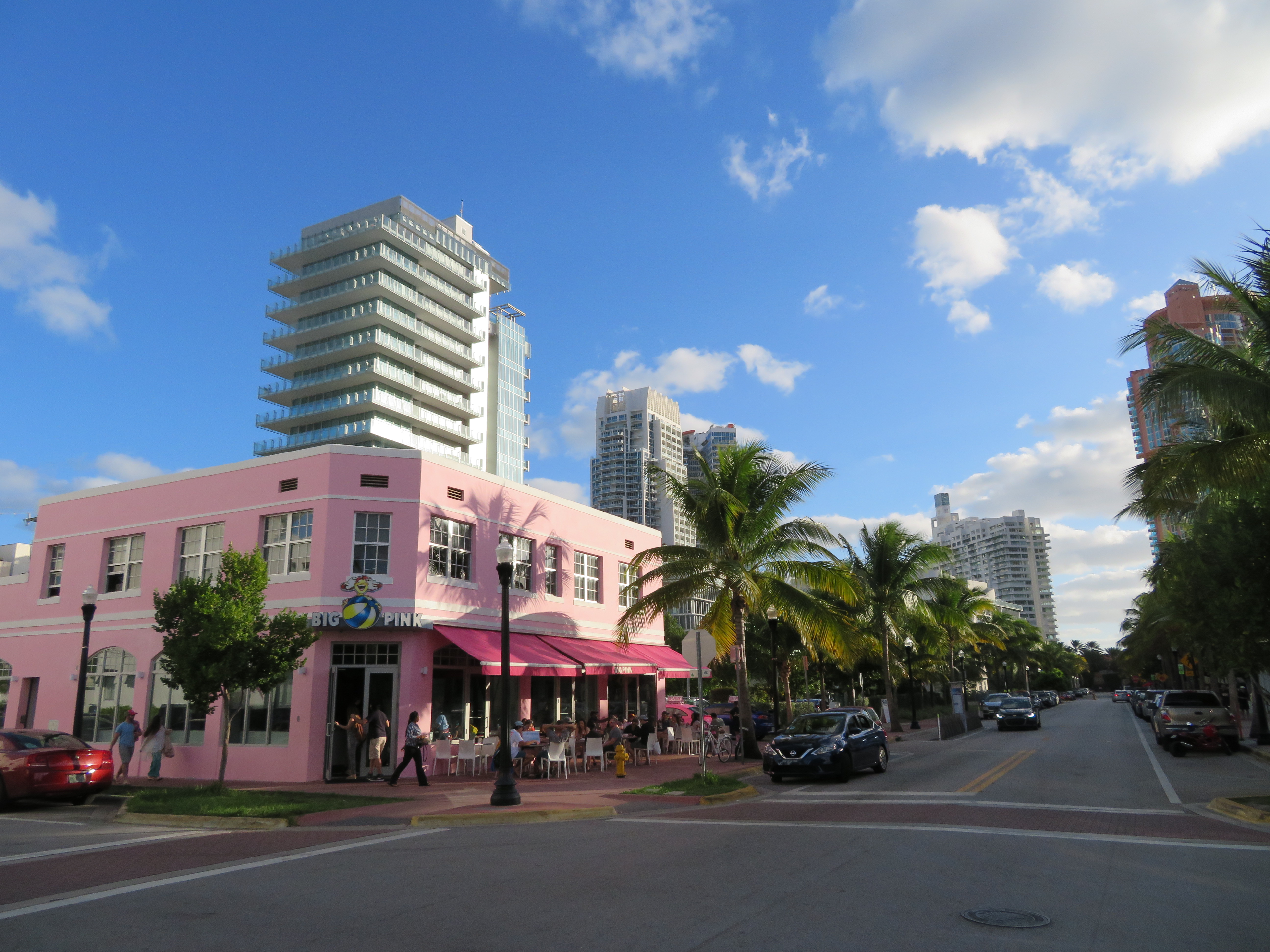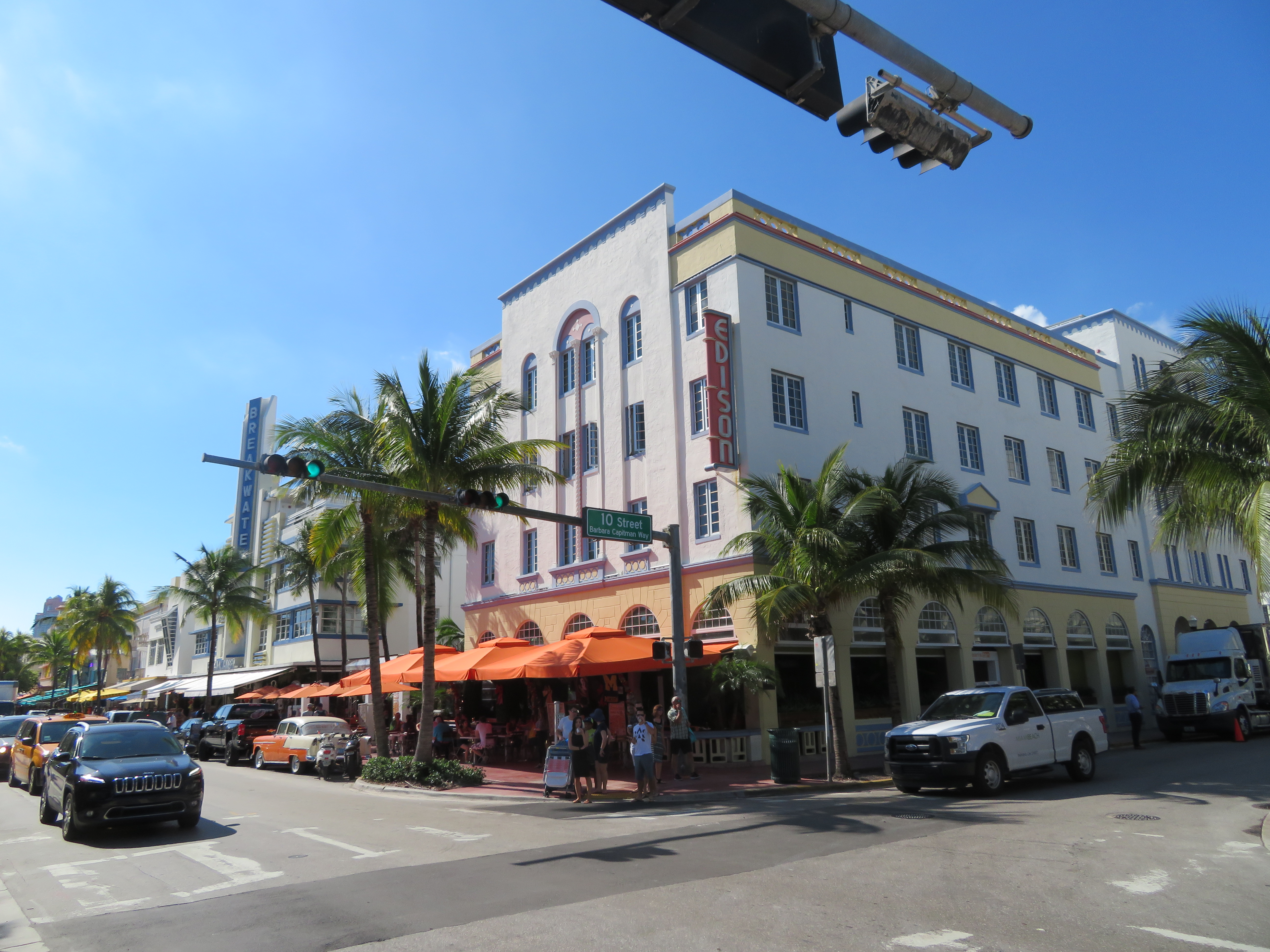 On poursuit par une balade dans South Beach, également appelé le « quartier art déco » en raison de ses maisons des années 30. Pas de grands buildings ici, architecturalement le quartier est assez agréable, il y a de beaux bâtiments entourés de palmiers, des petites rues calmes, dont les piétonnes Espanola Way (avec ses terrasses de restau) et Lincoln Road (plus dédiée au shopping). Et évidemment on déambule sur l’incontournable Ocean drive, le long de la plage.
