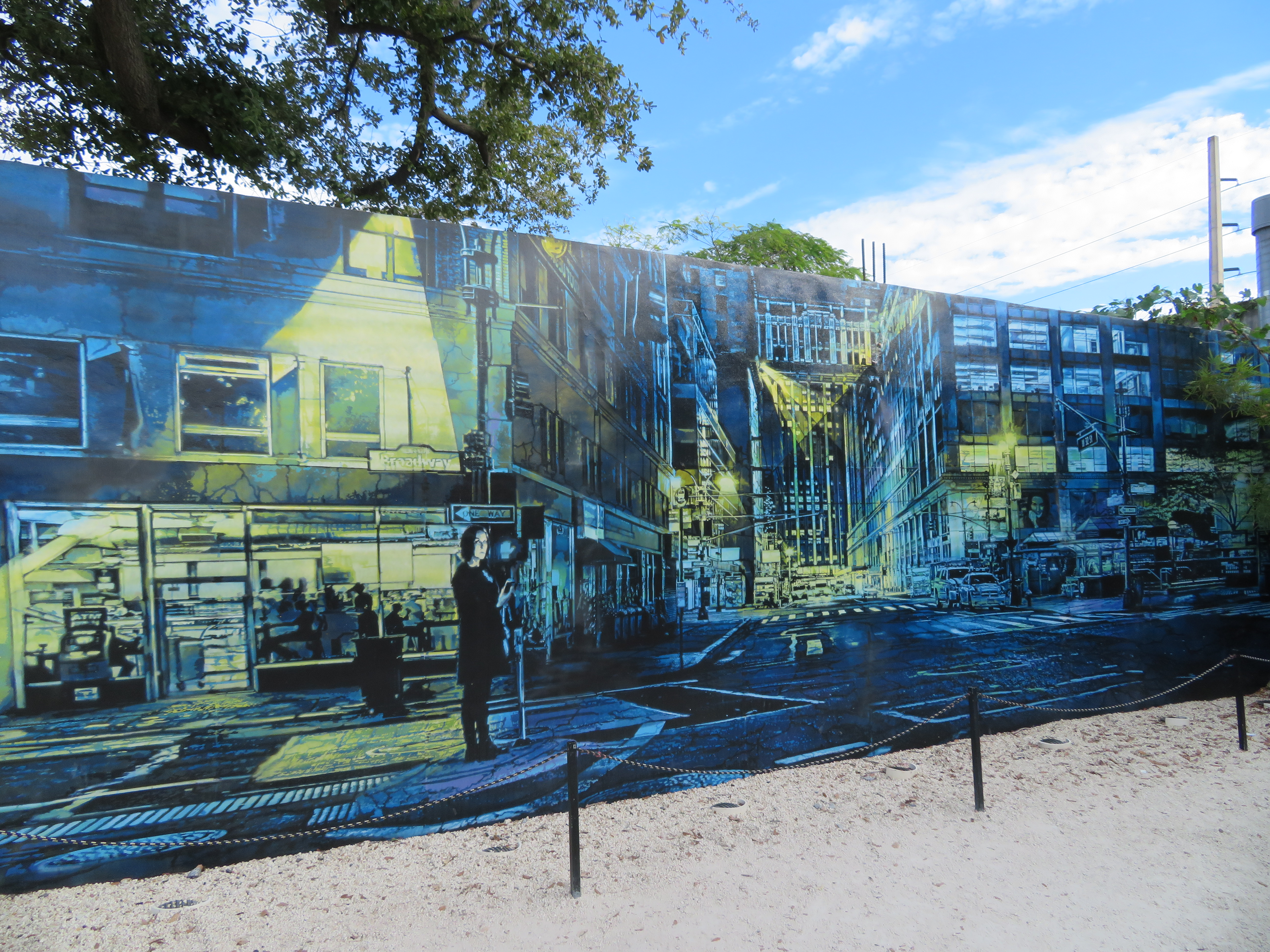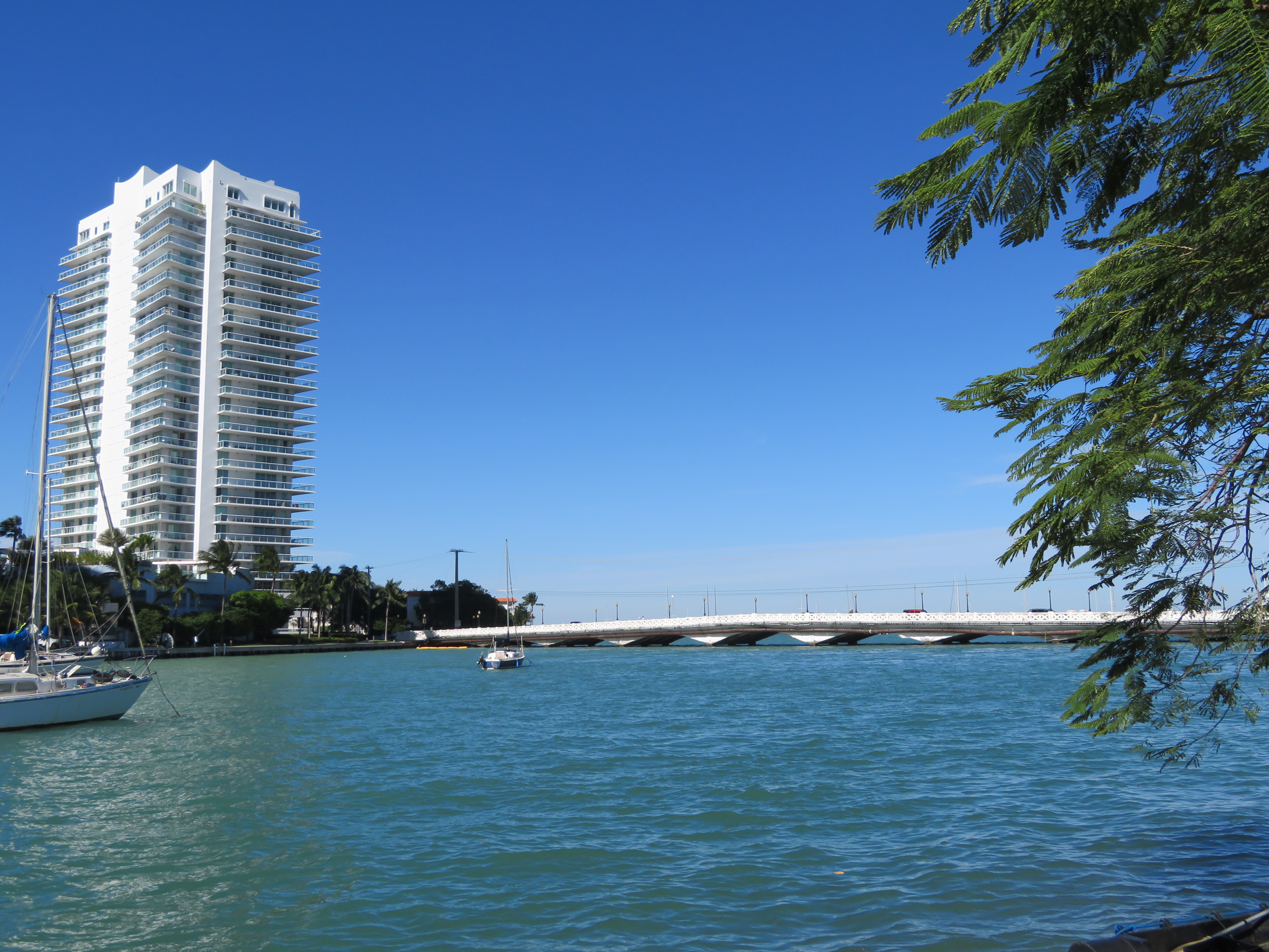 Le deuxième jour, on se lance dans une longue marche à travers Miami Beach et vers Downtown. L’île de Miami Beach est reliée à la côte par une série de ponts, et entre les deux la mer forme comme une sorte de lac intérieur. Au passage, les ponts traversent une série d’ilots artificiels, dont les Venetian islands où s’alignent les villas luxueuses. En arrière plan, les hauts buildings de Downtown se découpent au dessus de l’eau.