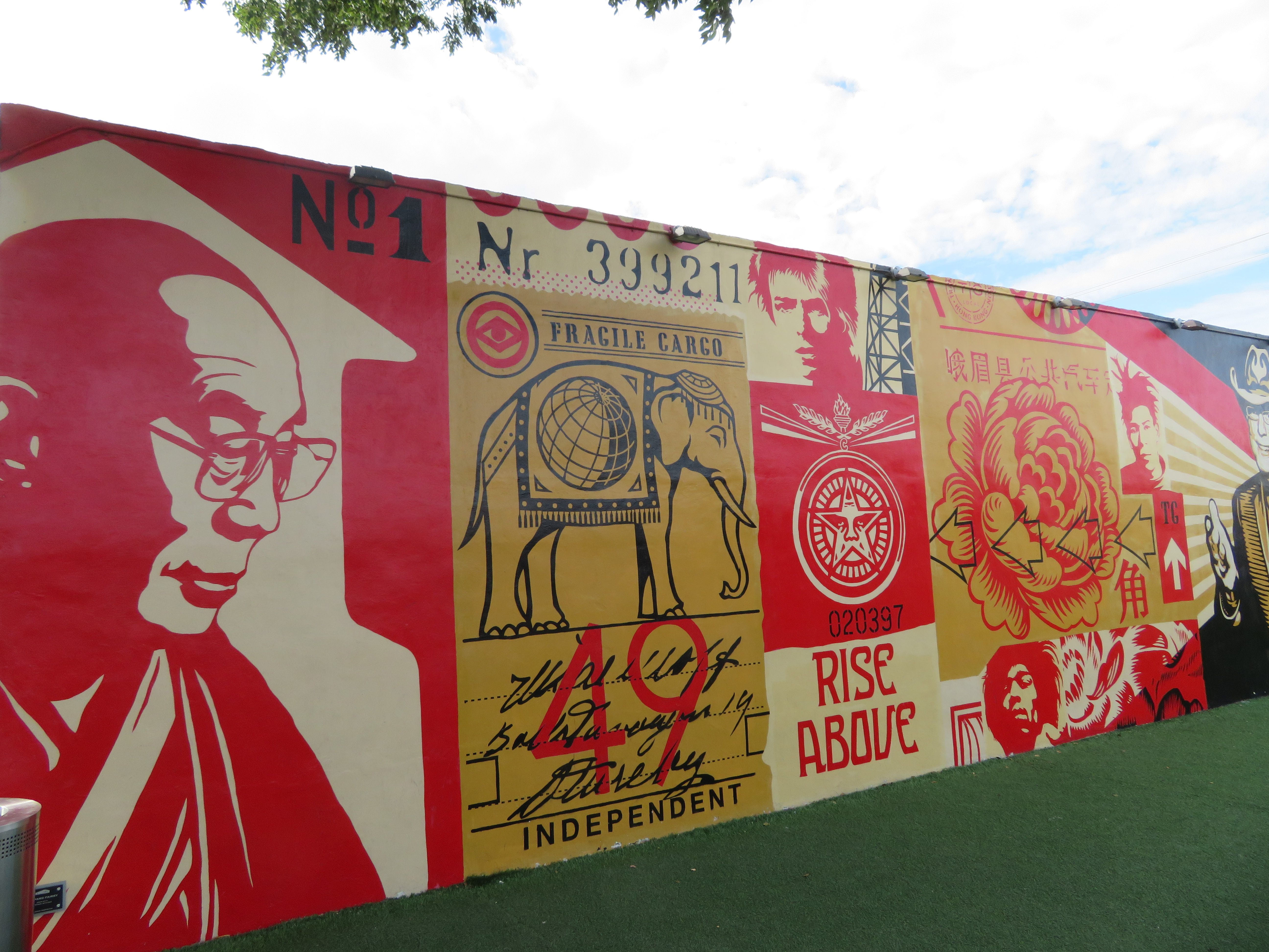 On marche une bonne dizaine de kilomètres, pour rejoindre le quartier de Wynwood. On y mange des délicieux buritos au canard dans THE fast food mexicain où une foule impressionnante se presse, qui nous avait été recommandé par notre compagnon de dortoir Alejandro (qui est mexicain donc on lui a fait confiance les yeux fermés !), avant de visiter les Wynwoods Walls, un ensemble de peintures murales de rue.