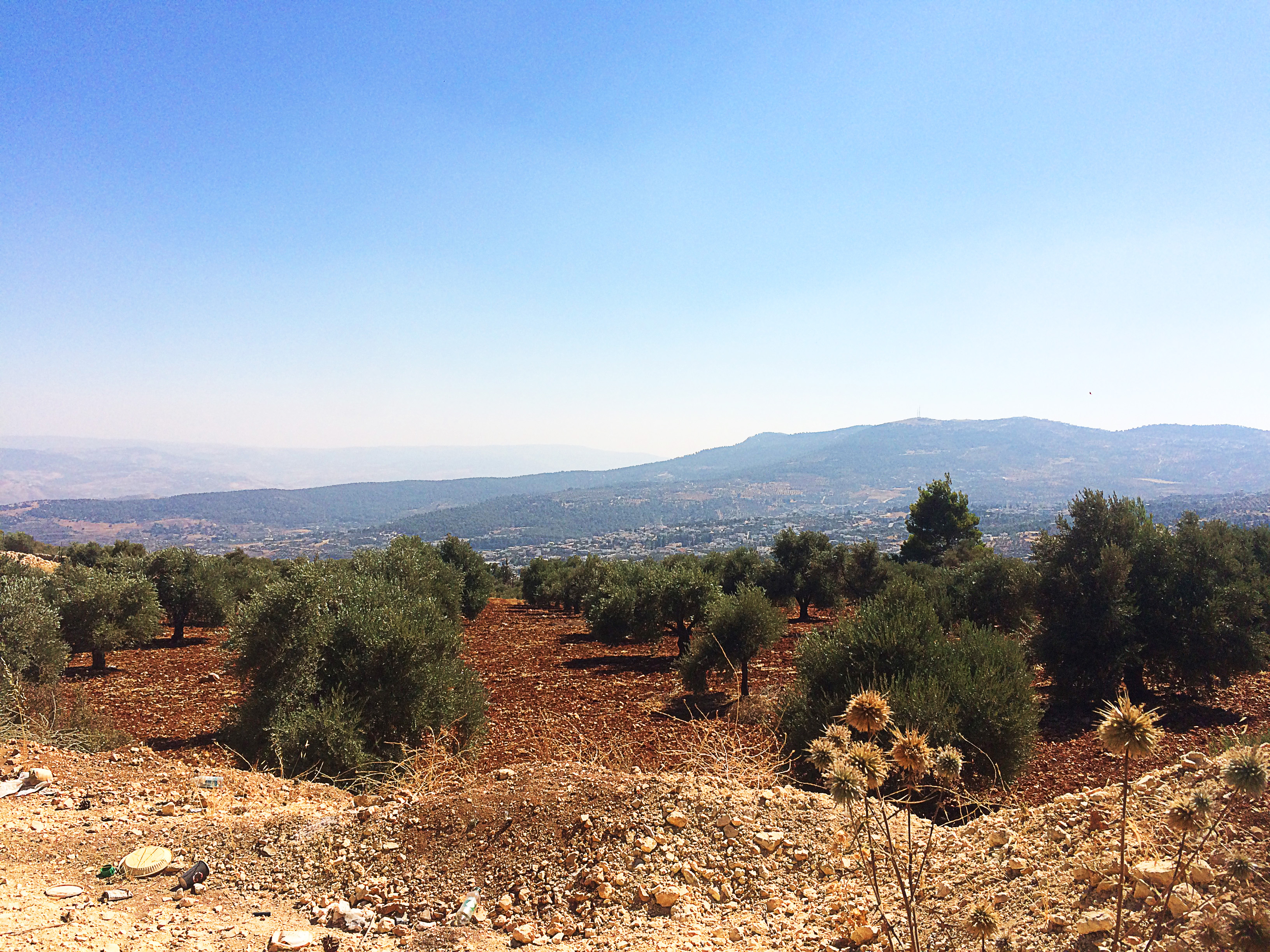 Niveau paysage, par contre on est bien, depuis notre tente on a une belle vue sur les collines avoisinantes. L’environnement est différent ici de ce qu’on a pu voir dans le reste du pays : la présence d’un petit affluent du Jourdain permet aux collines de se couvrir d’un peu de vert, des oliviers parsèment les champs… bref c’est un peu moins aride que partout ailleurs !