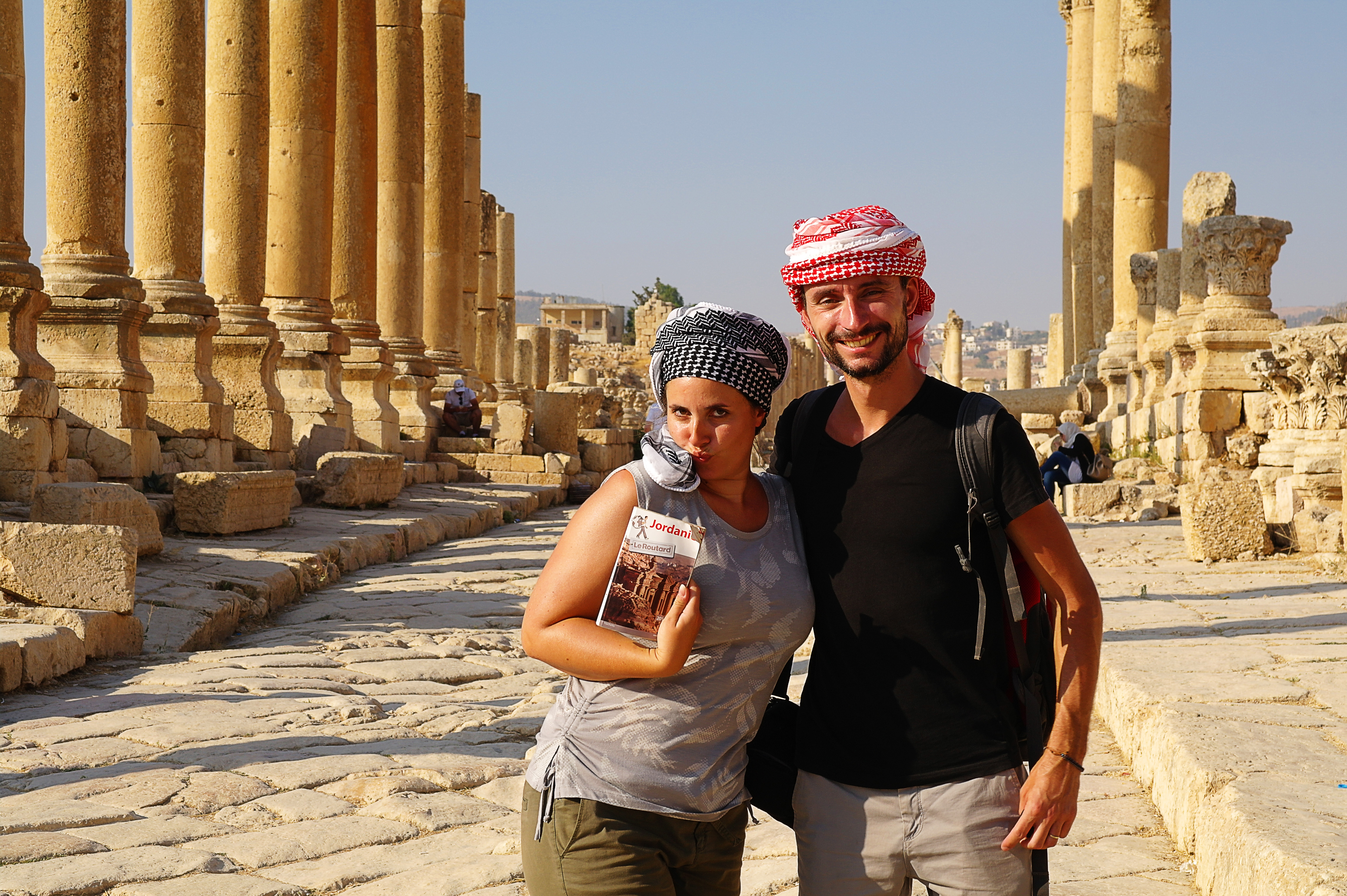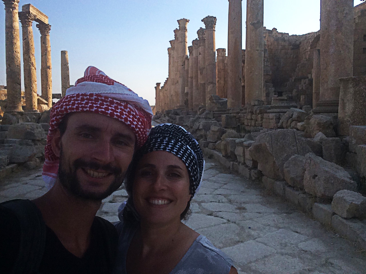 En ce qui nous concerne, c’est à la fin de notre voyage, après être partis dans le sud et au moment de revenir à Amman, qu’on a pris deux jours pour aller voir ces monuments. Mais comme en général ces sites sont visités depuis Amman, on fait une petite entorse à la chronologie et on vous en parle ici. Au moment de partir les explorer, on était équipés d’une voiture de location et accompagnés par deux autres voyageurs, Anna et koko, qu’on avait croisés à plusieurs reprises au cours de notre voyage et avec qui on s’était donné rendez-vous pour cette petite virée finale. Tous deux se sont révélés être des compagnons de route comme on les aime : curieux et de très bonne humeur !