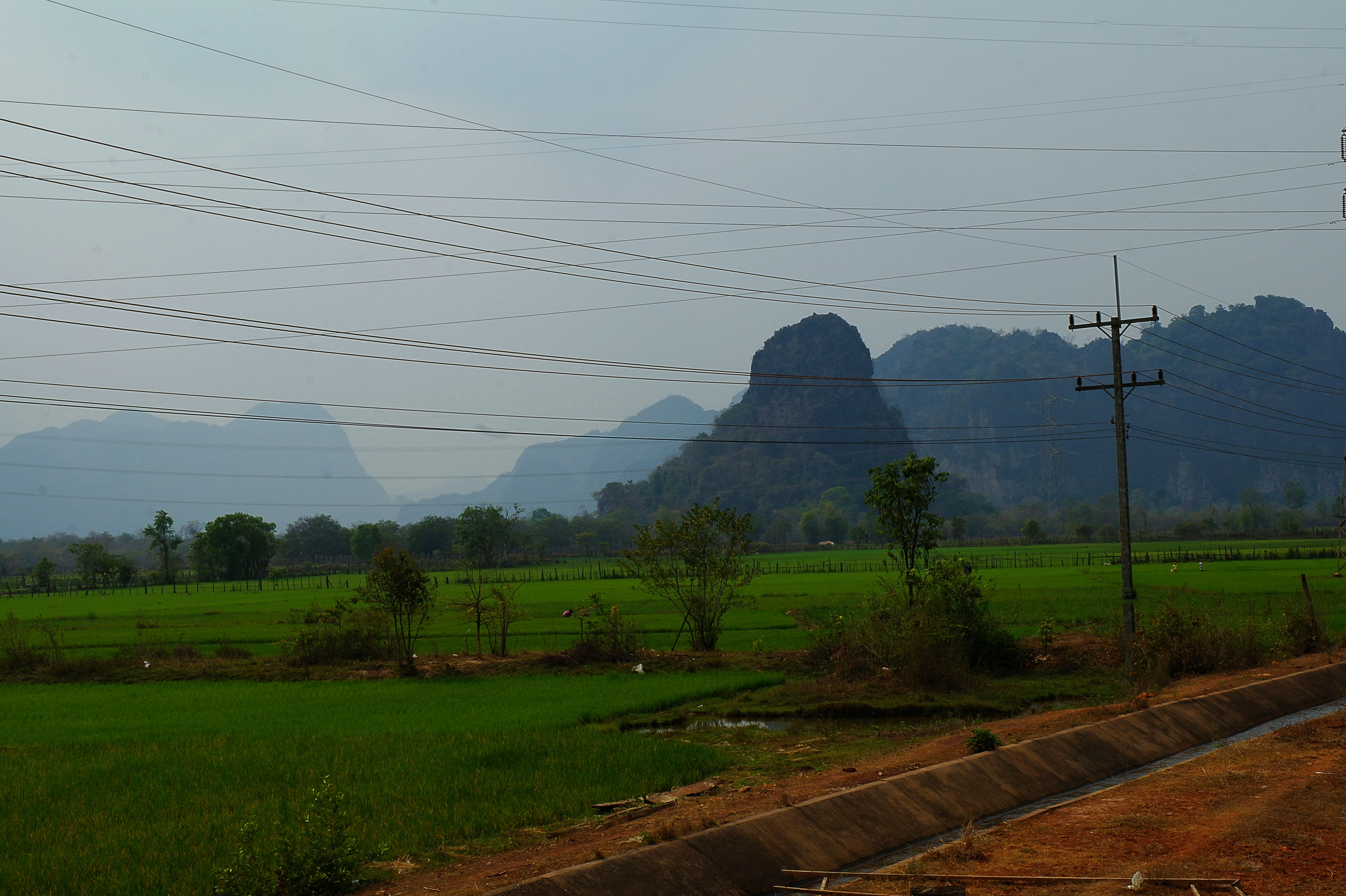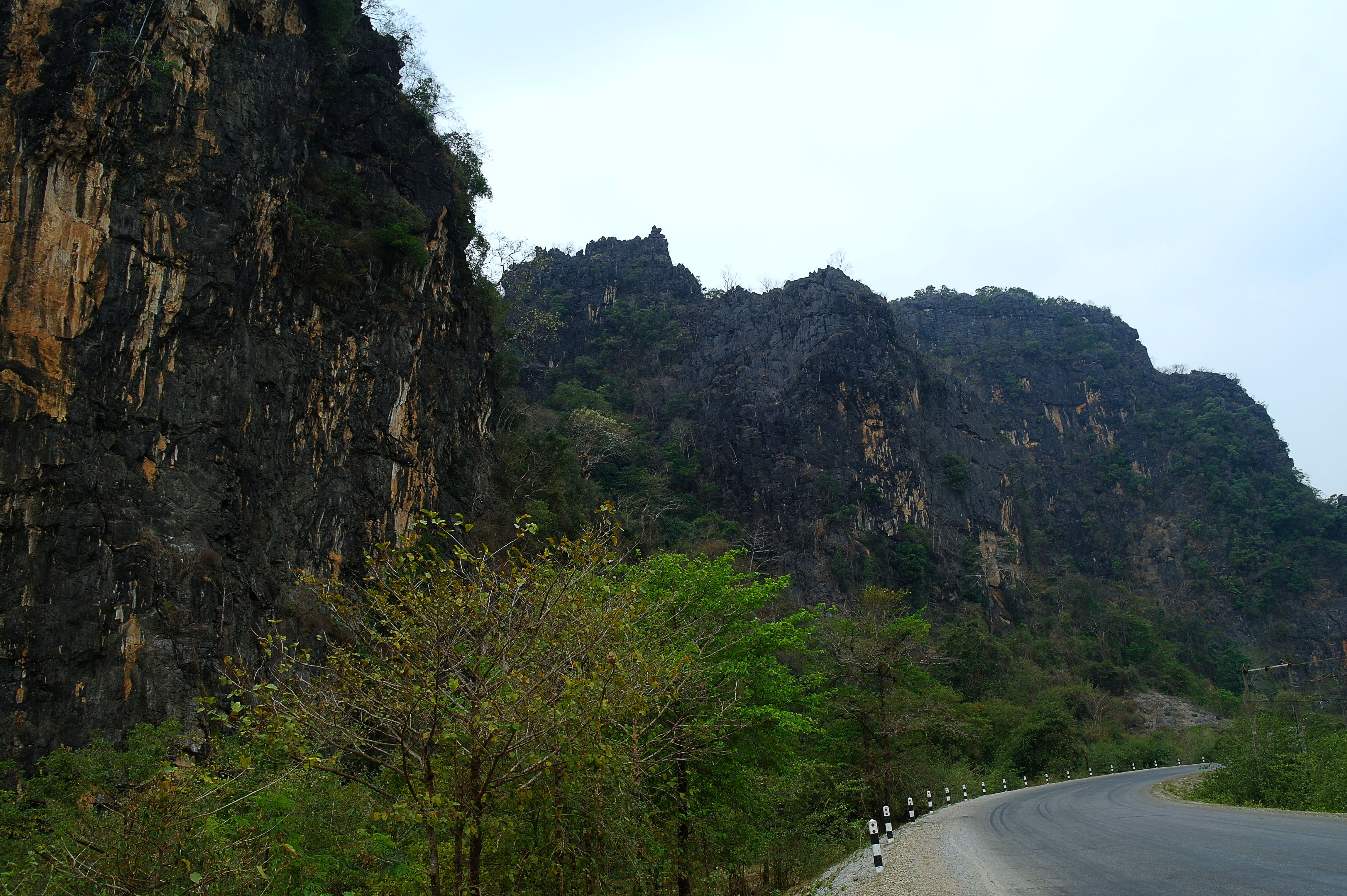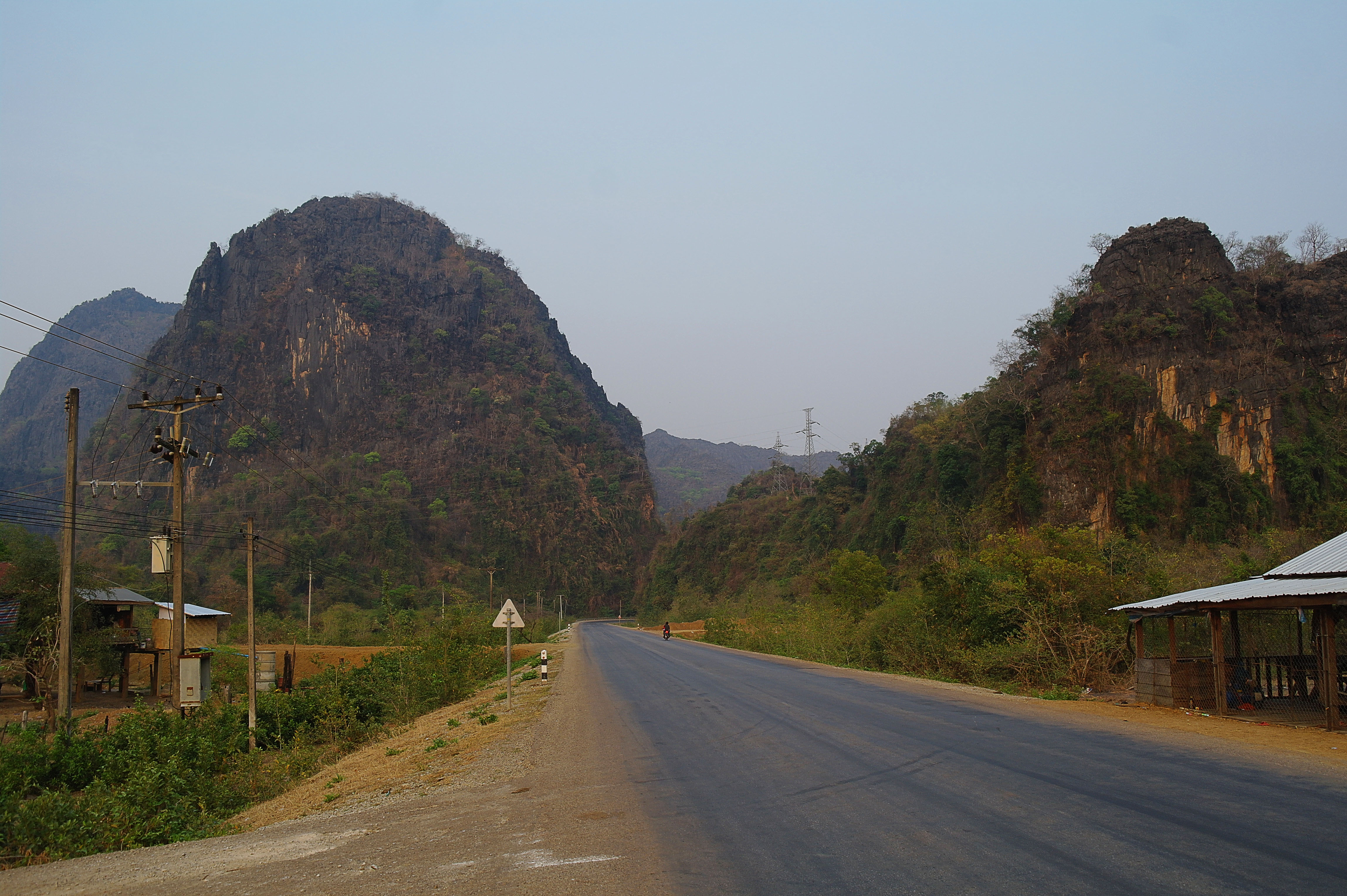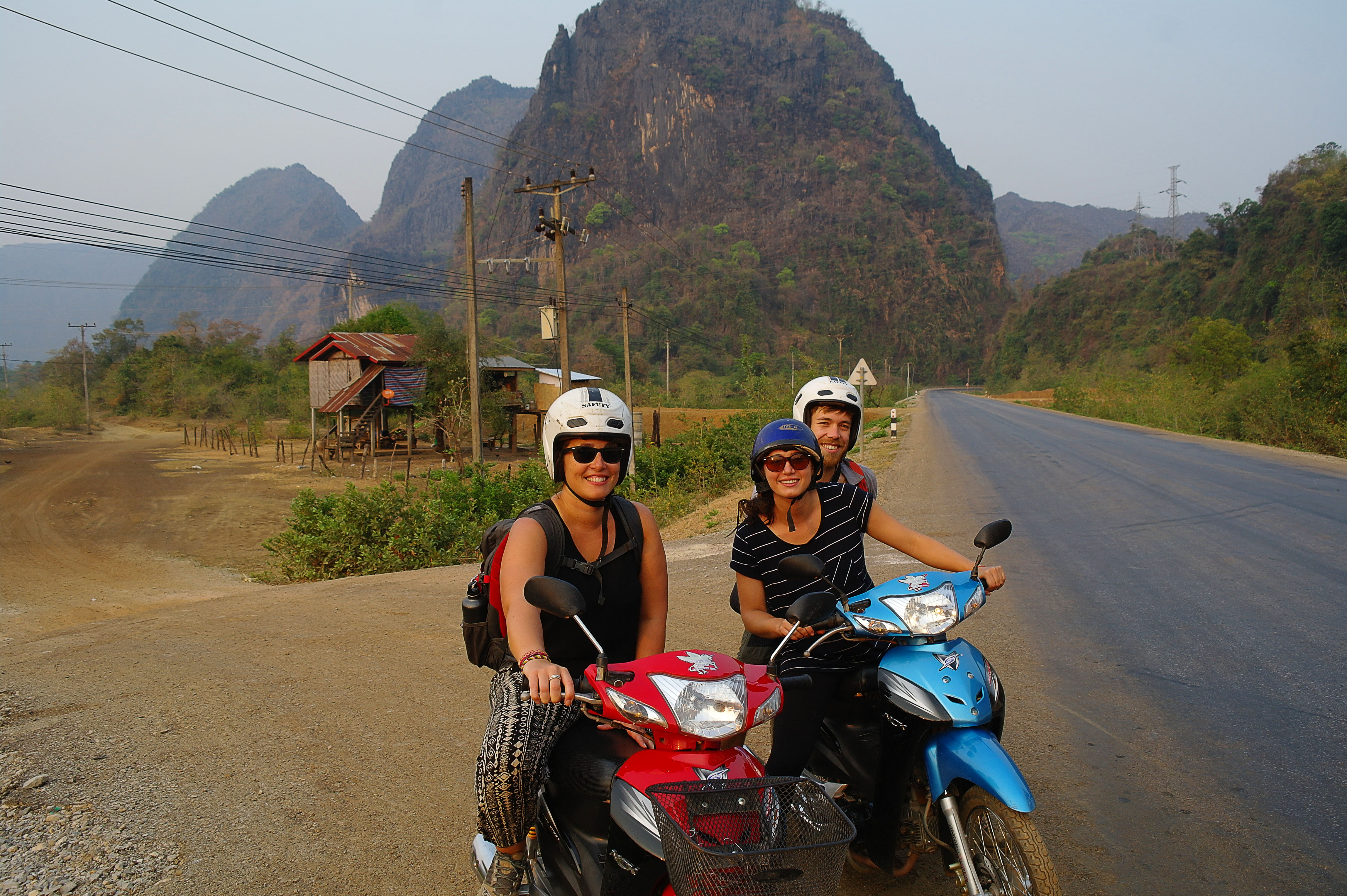 Les environs, en revanche, valent vraiment le coup d’œil. Vers l’est de la ville, direction le Vietnam, sur 40 kilomètres, la campagne aride est parsemée de pics karstiques (encore !). On enfourche deux scooters, et en route !