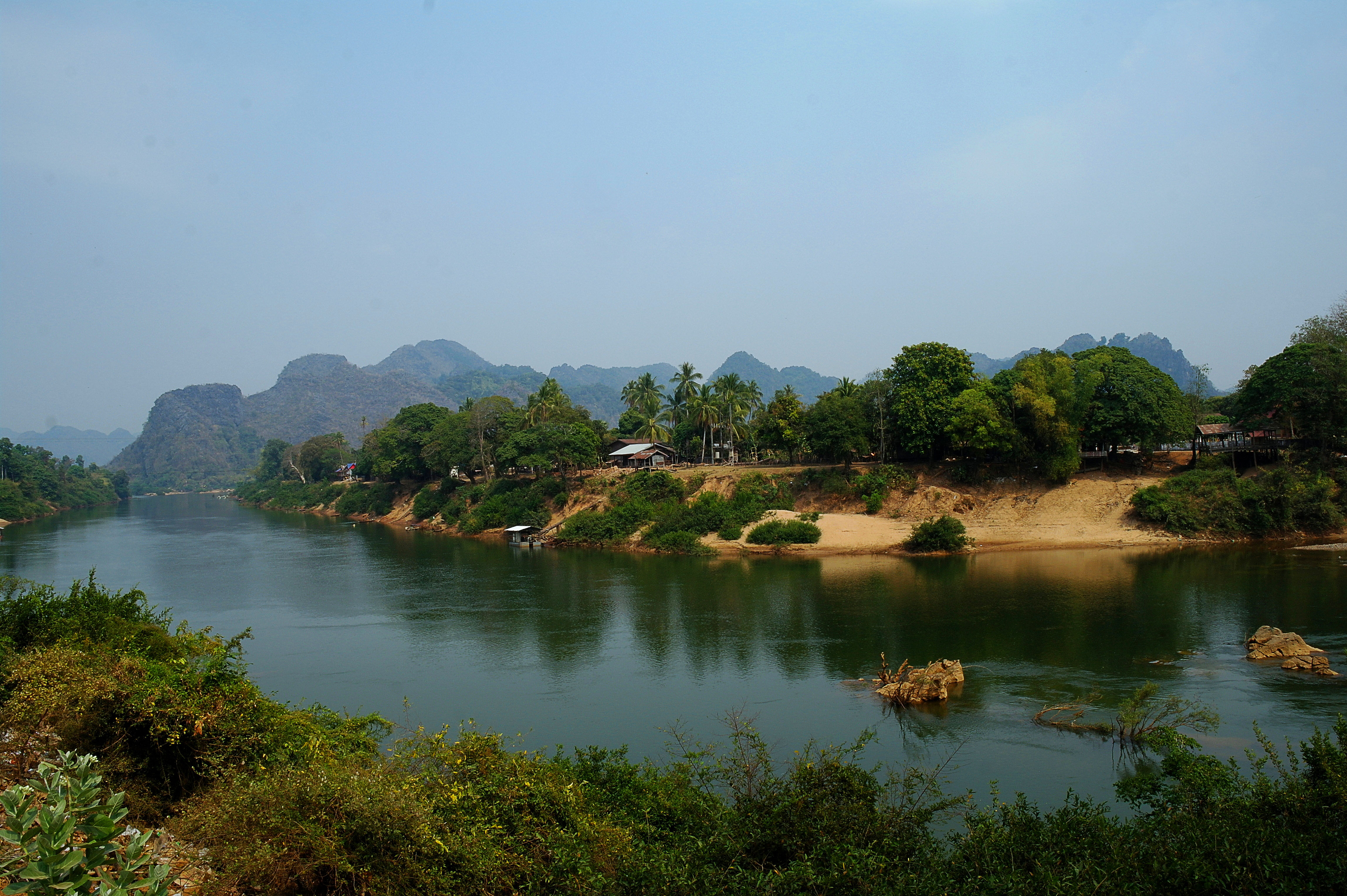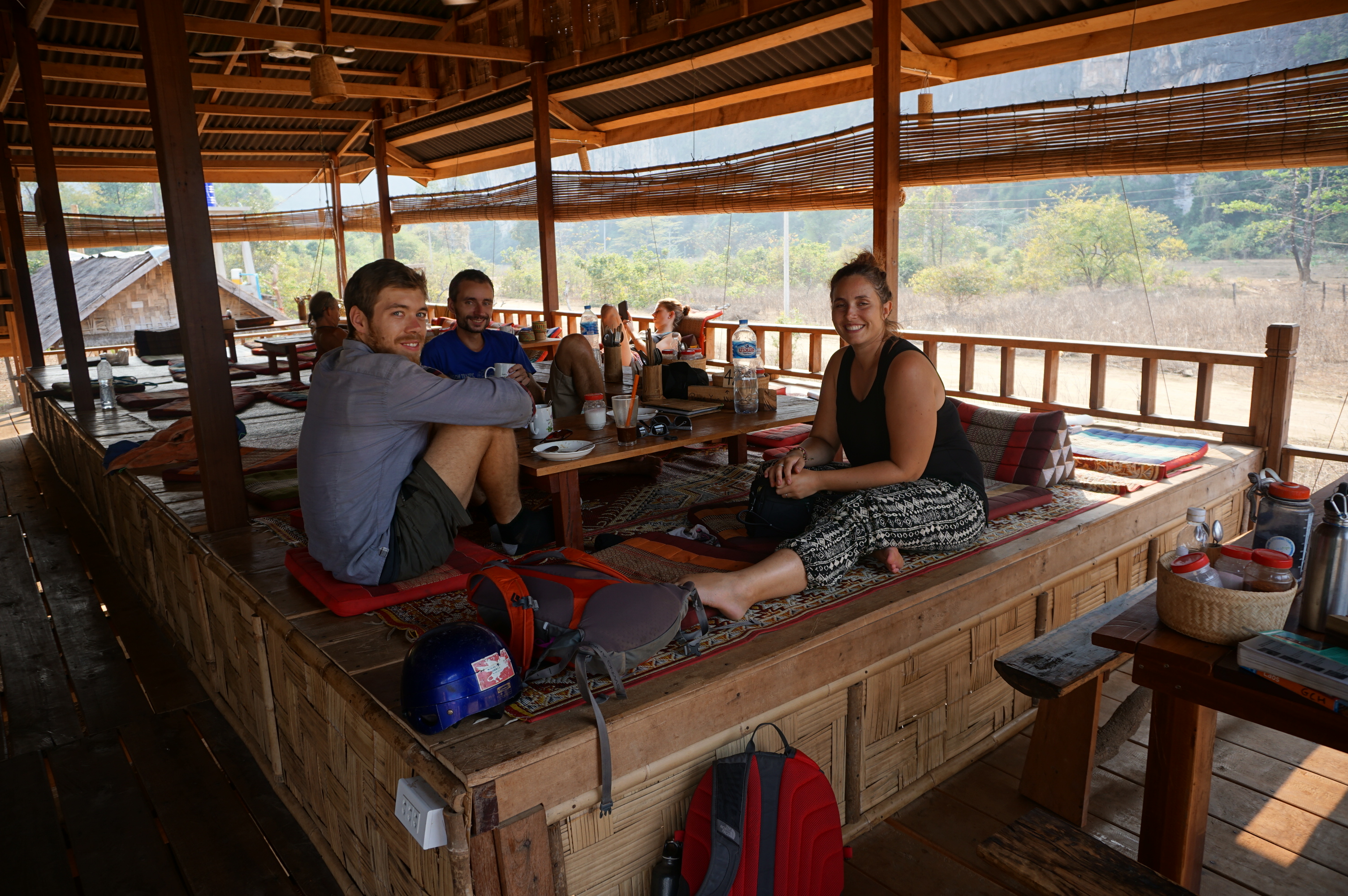 Sur tout le trajet, les paysages sont saisissants ; on se rend jusqu’au paisible et charmant village de Mahaxai, niché au creux d’une rivière affluent du Mékong. Après une visite au cours de laquelle on récoltera de nombreux sabaidee chaleureux des habitants et de coucous enjoués des enfants, on se pose dans un tout petit boui boui tenu par un mec super sympa aidé de ses deux enfants, qui propose en guise de plat unique le traditionnel pho vietnamien ; qui aurait parié que c’est ici, dans ce village reculé, qu’on mangerait le meilleur pho du voyage, agrémenté de bœuf, boulettes et calamar ?!