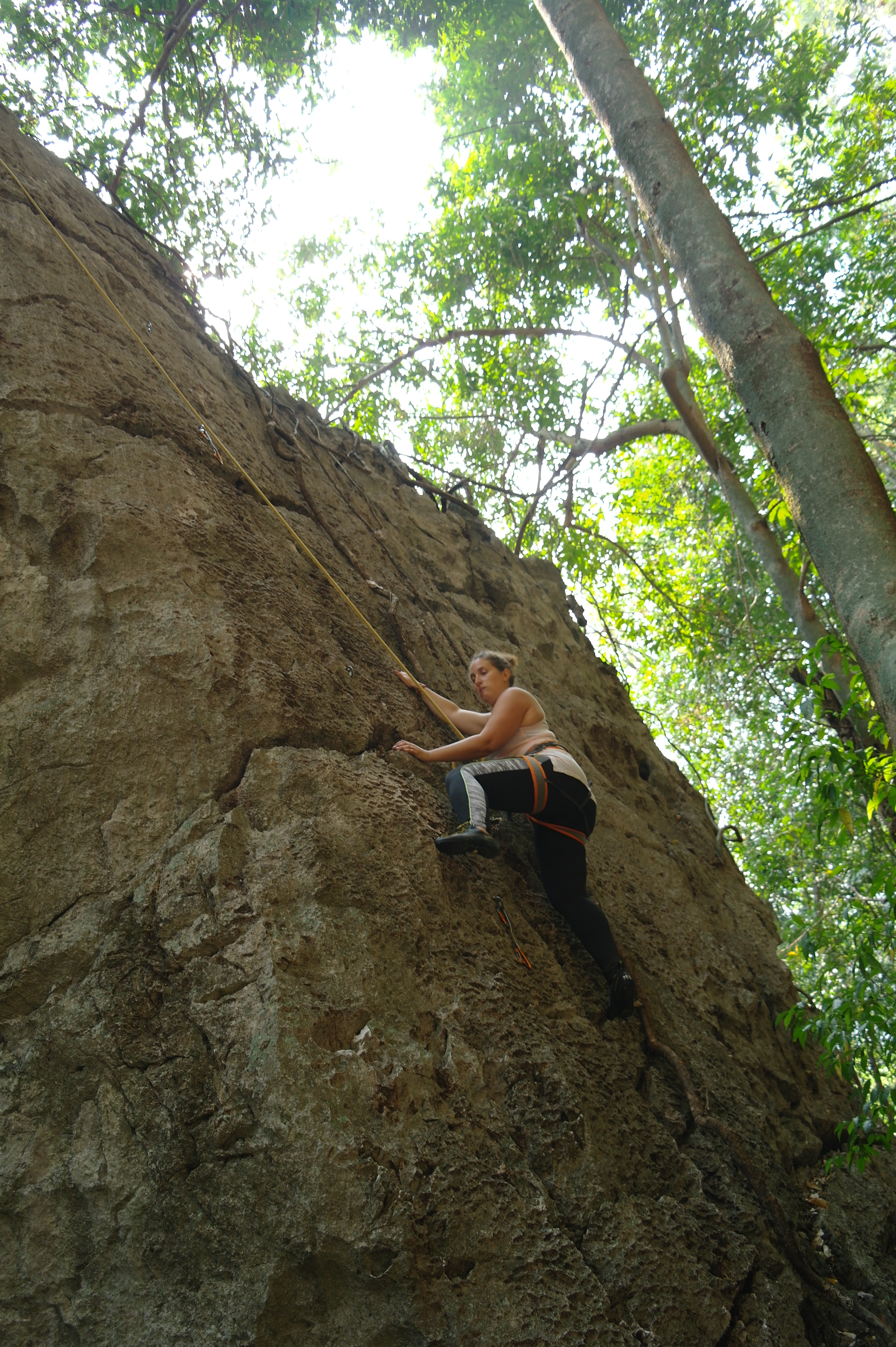 Le lendemain, on retourne voir les pics karstiques de plus près, et même de très très près, puisque, convaincus par Félix et Angelica qui en sont de grands fans, on se lance dans l’escalade. Le cadre est idéal pour une première expérience, et on doit dire qu’on a adoré cette matinée de grimpette !