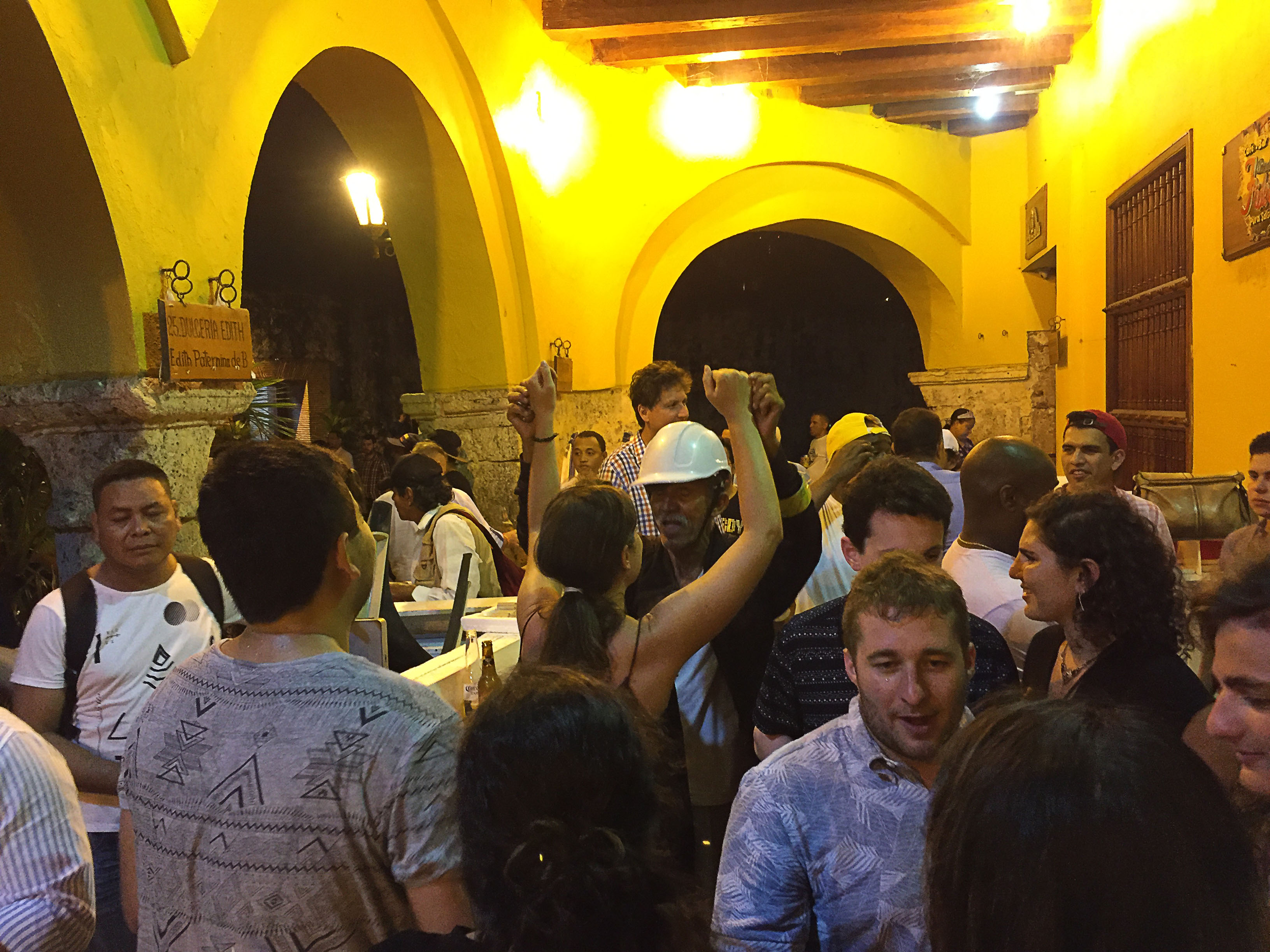 De nuit, c’est superbe aussi, avec la lumière tamisée des lampadaires et les éclairages multicolores sur les églises. Au niveau de la plaza de los coches, le soir l’animation est à son comble. Les clubs de Reggaeton côtoient les bars à Salsa, où les gens dansent jusque sur les trottoirs. On y passe une super soirée, au cours de laquelle on rencontre un groupe de mecs de Bogota en week-end qui nous donnent un petit cours accéléré de Salsa, évidemment arrosé de quelques shots d’aguardiente, l’incontournable alcool local.
