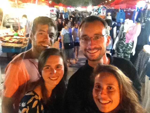 Calée contre le Mékong face à la Thaïlande, Vientiane est la (petite) capitale du Laos. La ville, de seulement 250.000 habitants environ, et dont le centre présente une architecture style colonial-défraichi, n’a pas beaucoup d’intérêt. On se contente donc d’y faire étape une seule nuit, juste le temps de faire un petit tour du centre ville et du night market, mais aussi de déguster un bon expresso dans l’un des cafés modernes de la ville, fréquentés par les laotiens branchés, le tout en compagnie de Félix et Angelica qui sont arrivés le même jour que nous, et on repart.