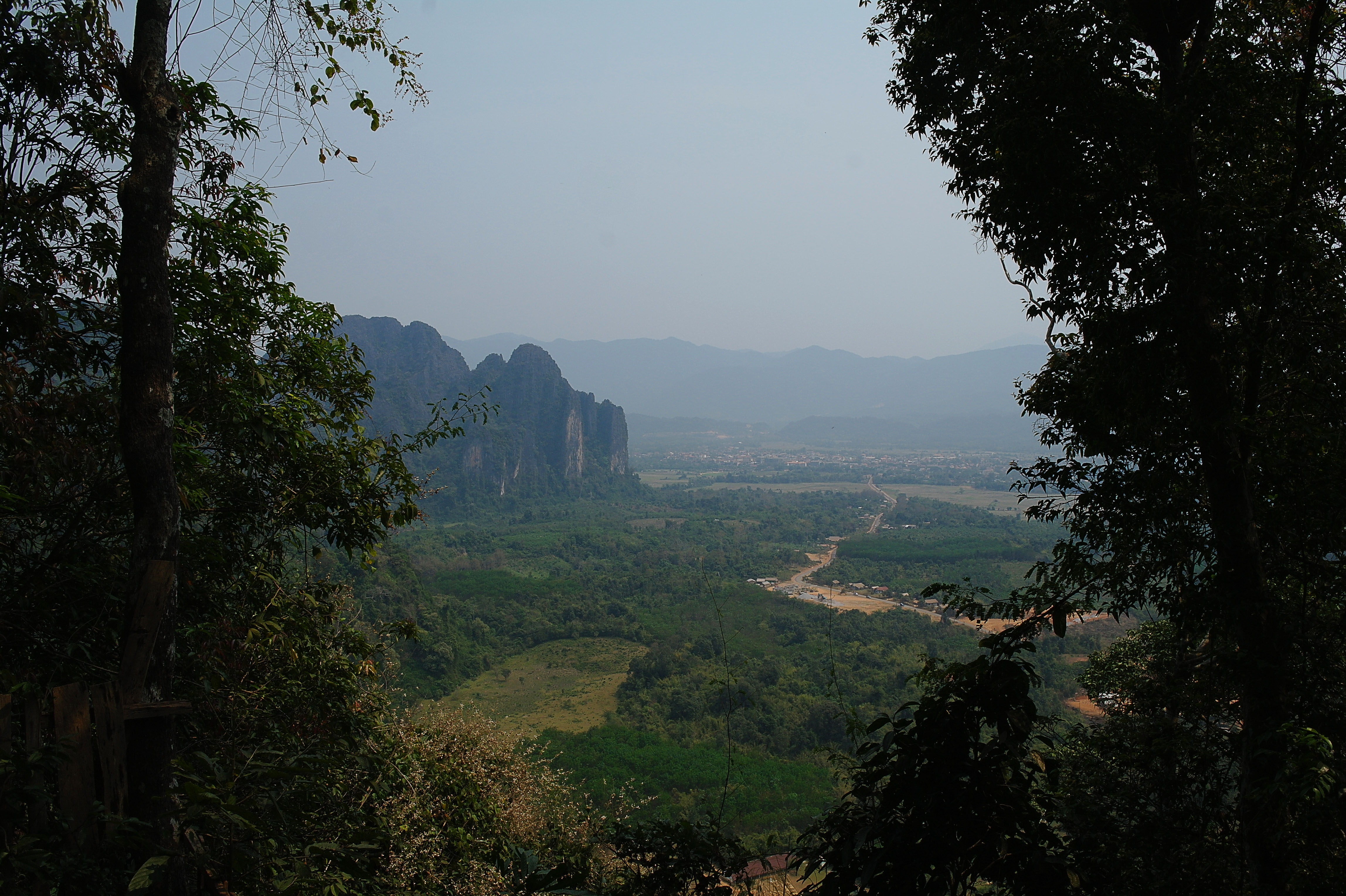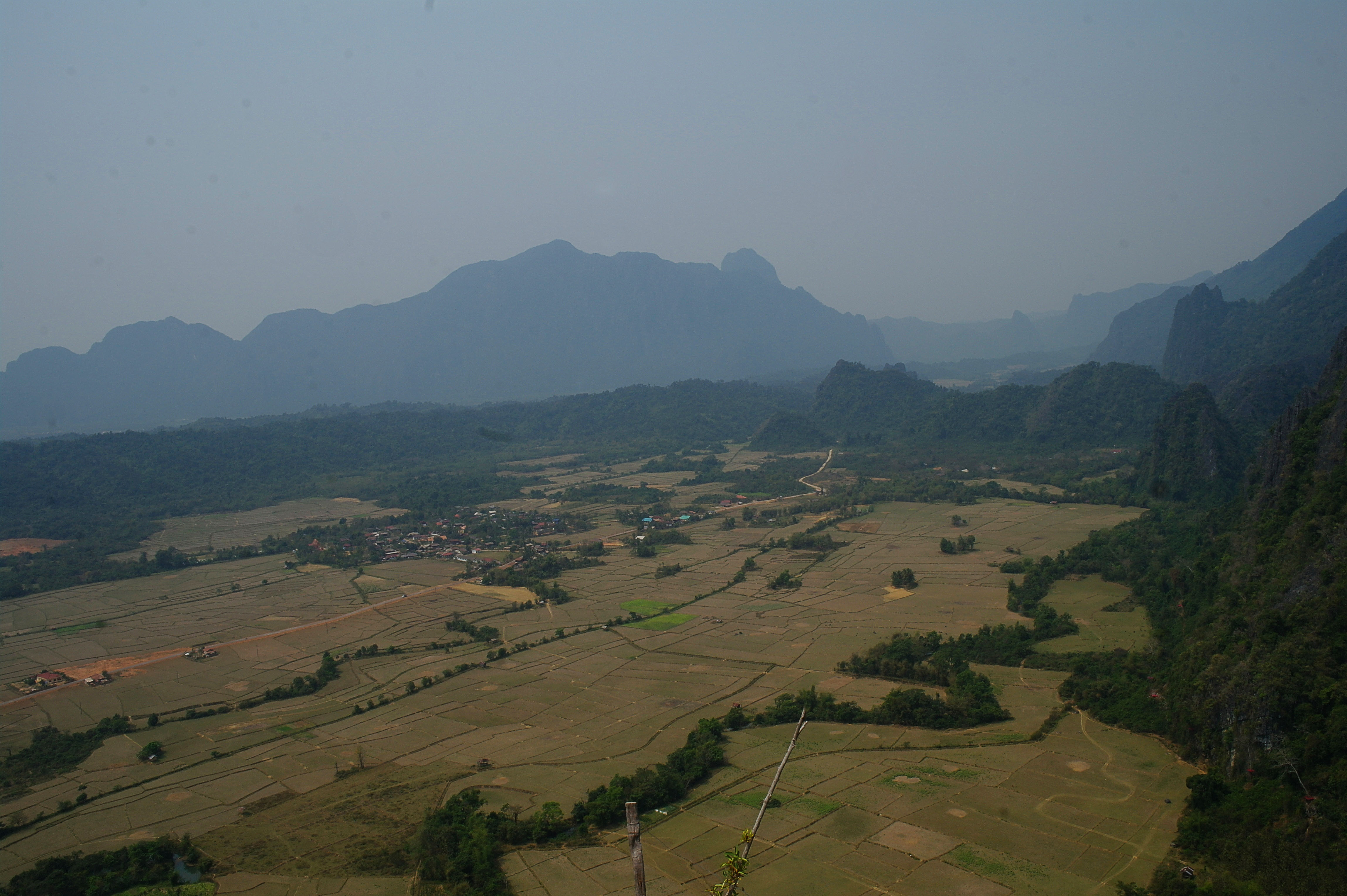 L’ouest de Vang Vieng est parsemé de pics karstiques impressionnants, qui valent parfois à la région la comparaison avec la Baie d’Halong au Vietnam (version terrestre, bien sûr, et quand même en moins impressionnant) On peut en avoir un bel aperçu en faisant, au départ de Vang Vieng, une boucle d’une trentaine de kilomètres de piste, qui serpente entre les pics et traverse plusieurs petits villages hmong ; c’est le laos (très) rural : rizières, champs, villages de cabanes en bois et confort minimum.