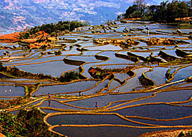 Et alors, ces terrasses ? Aménagées depuis plusieurs siècles par la population Hani, les rizières s’étalent à flancs de montagne sur des milliers d’hectares et offrent de superbes jeux de couleurs, en particulier au lever ou au coucher du soleil.
