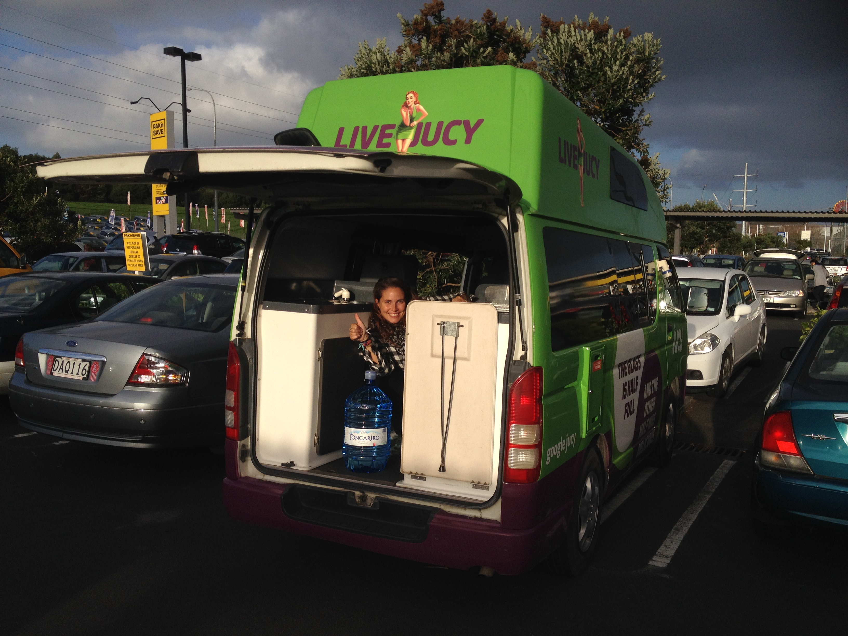 Il se fait tard et on décide donc de couper la route en deux et de s’arrêter en chemin pour dormir. On fait donc étape dans un charmant petit campsite en surplomb de la mer, le Matakohe Holiday Park. La soirée nous permet de nous familiariser avec notre van, bien aménagé et super fonctionnel ! Evidemment, il faut passer son temps à déplacer ses affaires et à déplier les meubles, mais c’est gérable. Quant au coin cuisine, il est minuscule, mais ceux qui connaissent notre ancien appart’ savent qu’on y est habitué !