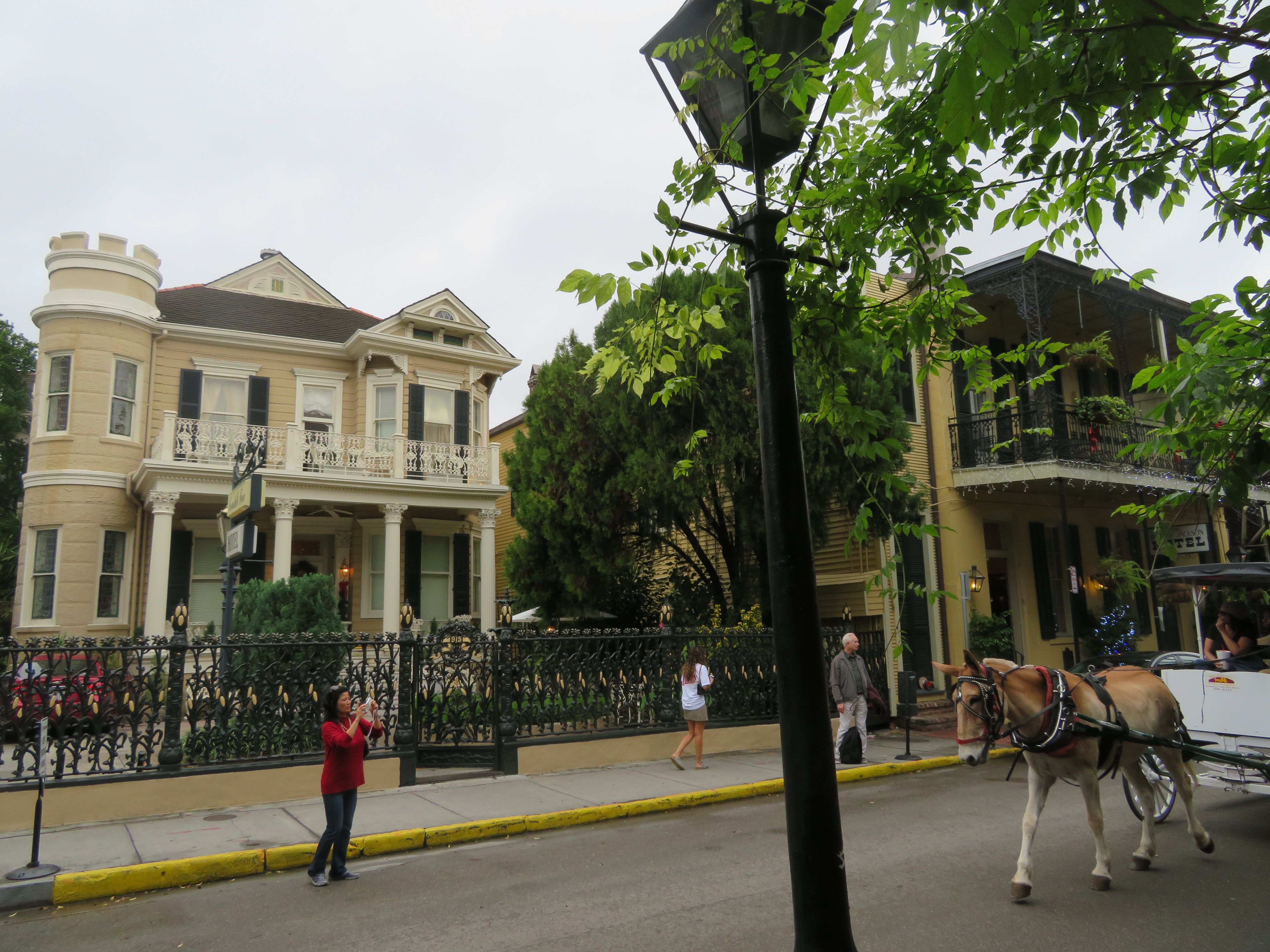 Après notre détour imprévu par Miami, on fait notre arrivée à la Nouvelle Orléans. Et c’est peu dire que cette arrivée est un peu pénible… On atterrit vers 8h30 le matin du 1er janvier, après une nuit blanche puisqu’on avait quitté Miami en pleines festivités du nouvel an pour embarquer sur un vol très très matinal. C’est donc un tout petit peu fatigués qu’on se rend (en taxi, puisqu’on rate notre bus et que le suivant est 2 heures plus tard…) vers Magazine Street, où se situent 2-3 guesthouses qu’on avait repérées. Problème, elles sont toutes full… On commence donc à marcher à la recherche d’un autre endroit où dormir. C’est en fait le début d’une longue errance à travers les rues désertes dans l’ambiance d’un dimanche matin 1er janvier… On passe deux heures à chercher un endroit où s’installer, tout en se rapprochant plus ou moins du centre ville. Tout est plein ou trop cher, et on commence à se désespérer. Au final, un chauffeur de taxi nous interpelle et prend pitié de nous ; il accepte de téléphoner pour nous (puisqu’en plus, on est à court de batterie) à différents hôtels pour nous trouver une place quelque part ; et c’est comme ça qu’on finit dans un hôtel tout miteux et beaucoup trop cher mais proche du centre historique. Il est midi, on n’en peut plus, ça ira bien pour aujourd’hui, on s’écroule et on dort.