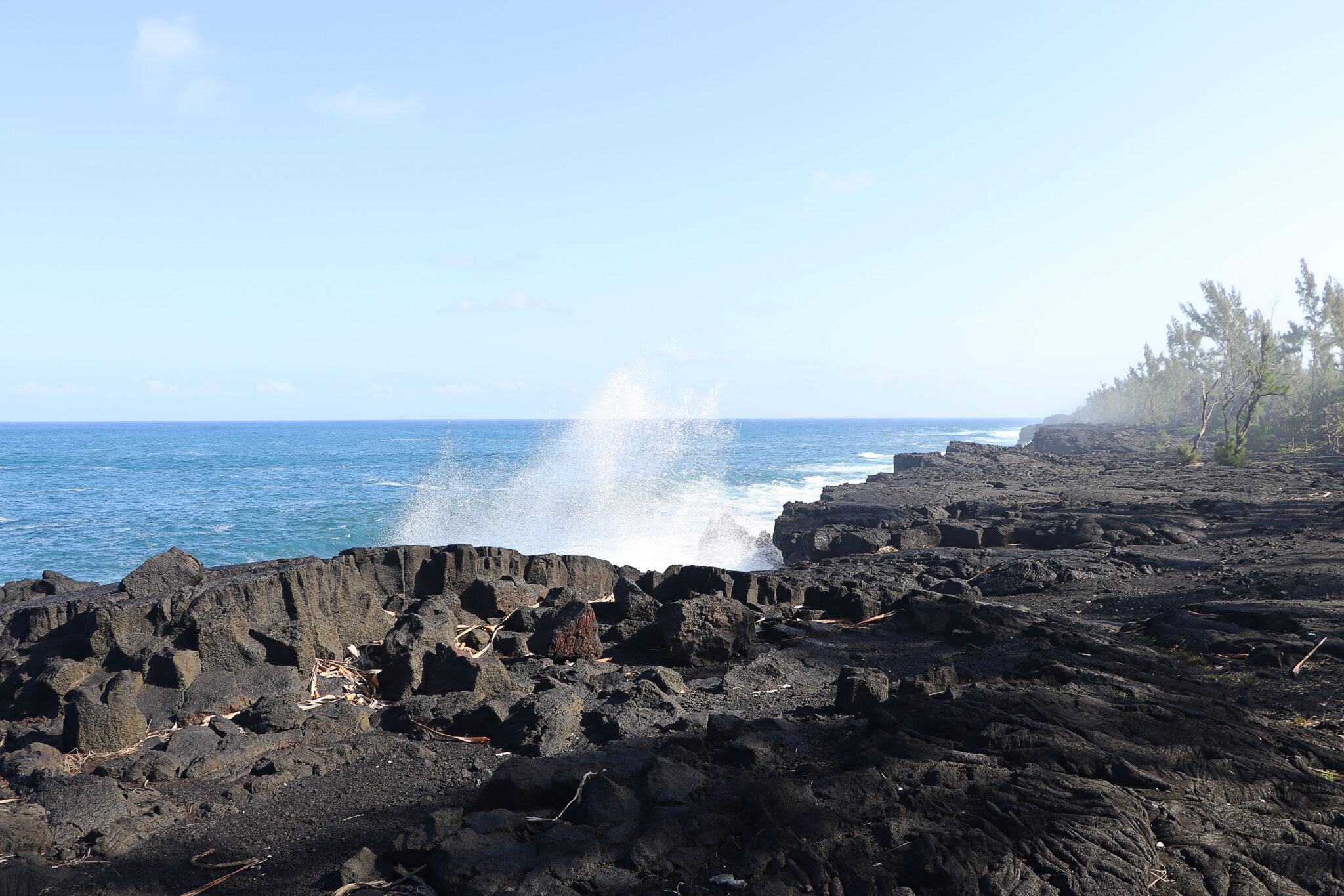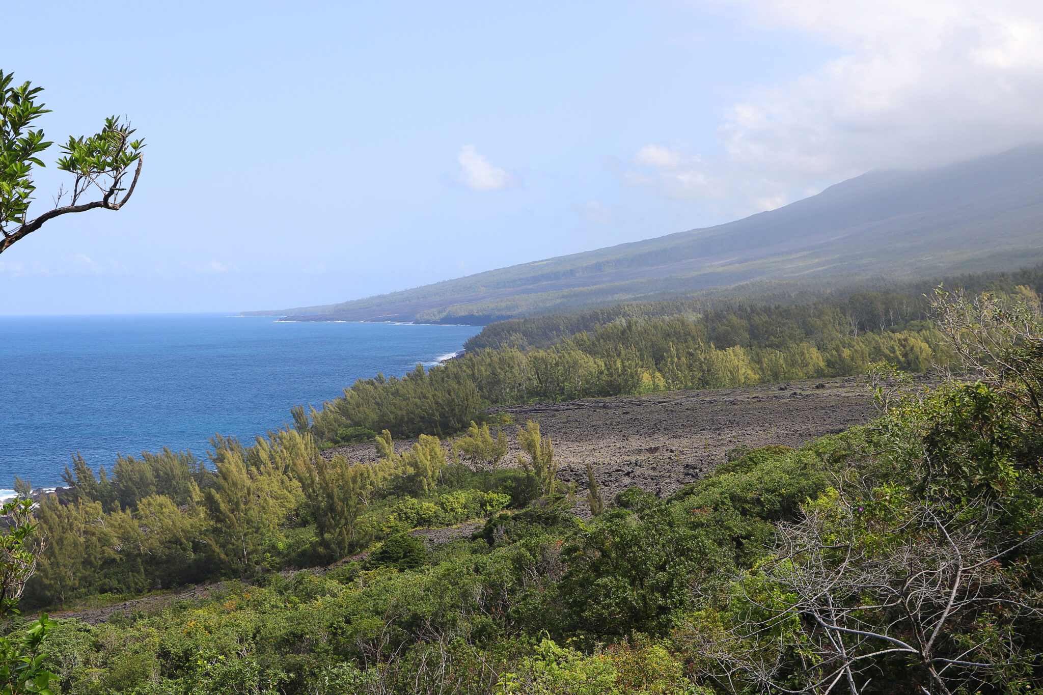 Pour compléter notre découverte du volcan on a décidé d’aller explorer la côte est de l’île, entre Bras-Panon et Saint Philippe. Non seulement on découvre un autre aspect de La Réunion, plus nature, beaucoup moins urbanisé, mais on peut aussi constater de nos yeux les conséquences des éruptions successives. Au fil des éruptions les différentes coulées se déversent hors de l’enclos dans la zone sud, Sud-est de l’île, pour l’essentiel dans la zone dite du « grand brulé », interdite à la construction (et même sans interdiction il faudrait quand même être un peu inconscient pour construire ici !).