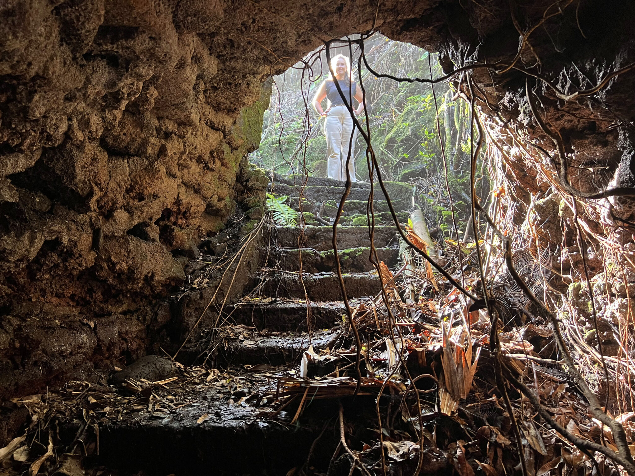 Enfin on s’arrête au niveau du site du jardin volcanique et du puis arabe, sur les coulées de 1776 et de 1986, qui ont formé un plateau sur l’océan. Quant au puit lui-même il n’y a pas grande chose à voir, juste quelques marches qui plongent dans une sorte de grotte.