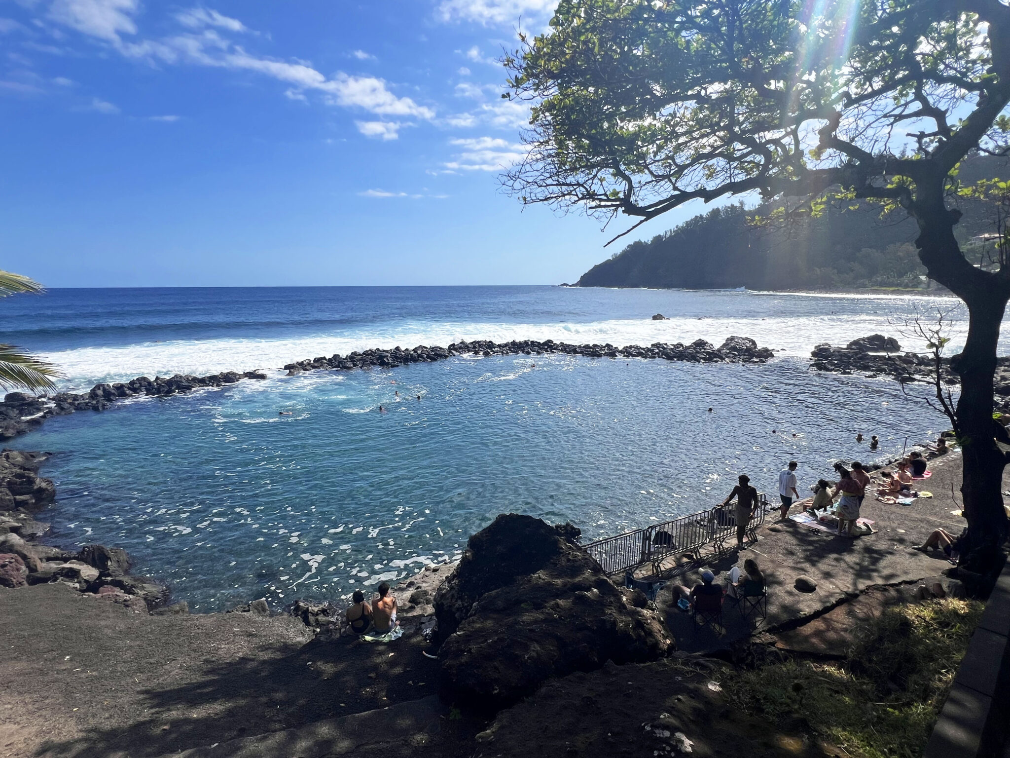 Enfin on termine avec un des rares endroits où on peut se baigner en ayant de l’eau aux épaules à La Réunion, le bassin de Manapany ! Une adresse à garder si on veut nager un peu, par contre il n’y a pas de plage, on se pose sur les marches en béton, ce n’est pas vraiment le top du confort ni du charme.