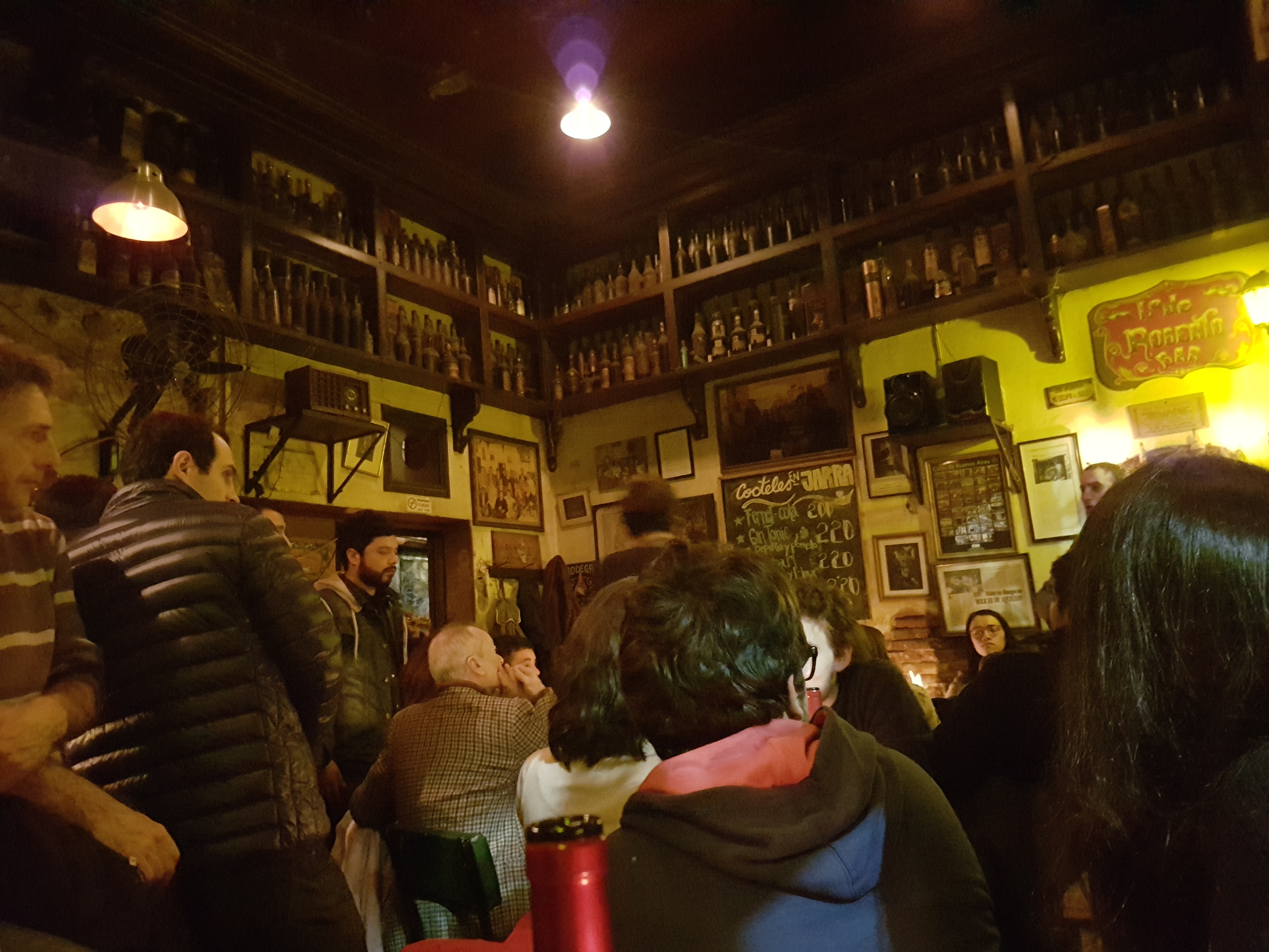 Dans la pulperia où Rodrigo et Laura nous ont emmenés, on s’est retrouvés au milieu d’une clientèle d’habitués venus pour boire un verre mais essentiellement pour écouter du tango tout en le vivant. Tout se fait très simplement, sans chi-chi, trois musiciens / chanteurs se relaient dans un coin de la salle, à quelques centimètres du public, et c’est parti. Les gens participent, connaissent les paroles, certains chantent et semblent vraiment transportés par la musique. Quant à nous, on est vraiment tombés sous le charme de cette ambiance particulière.