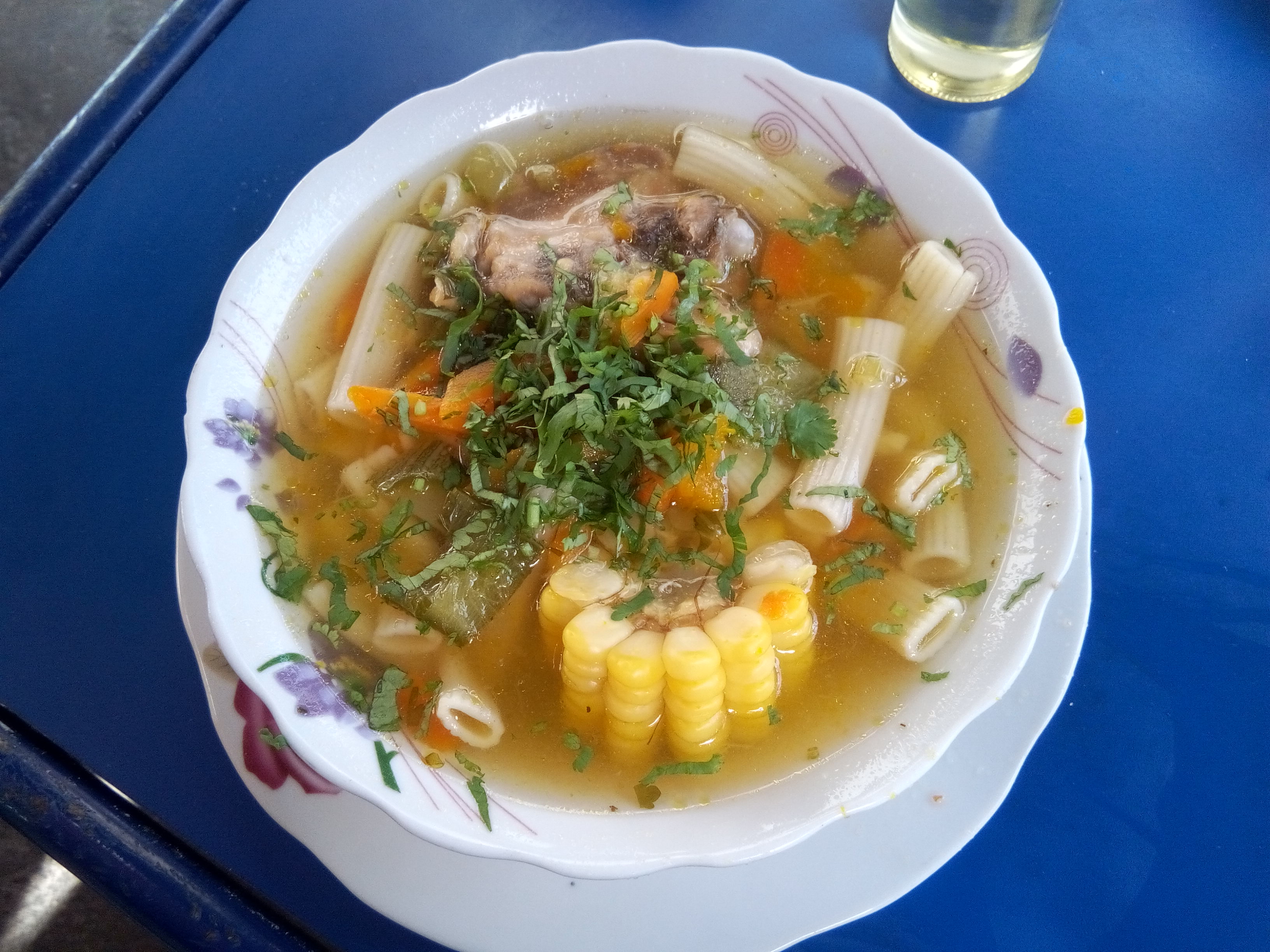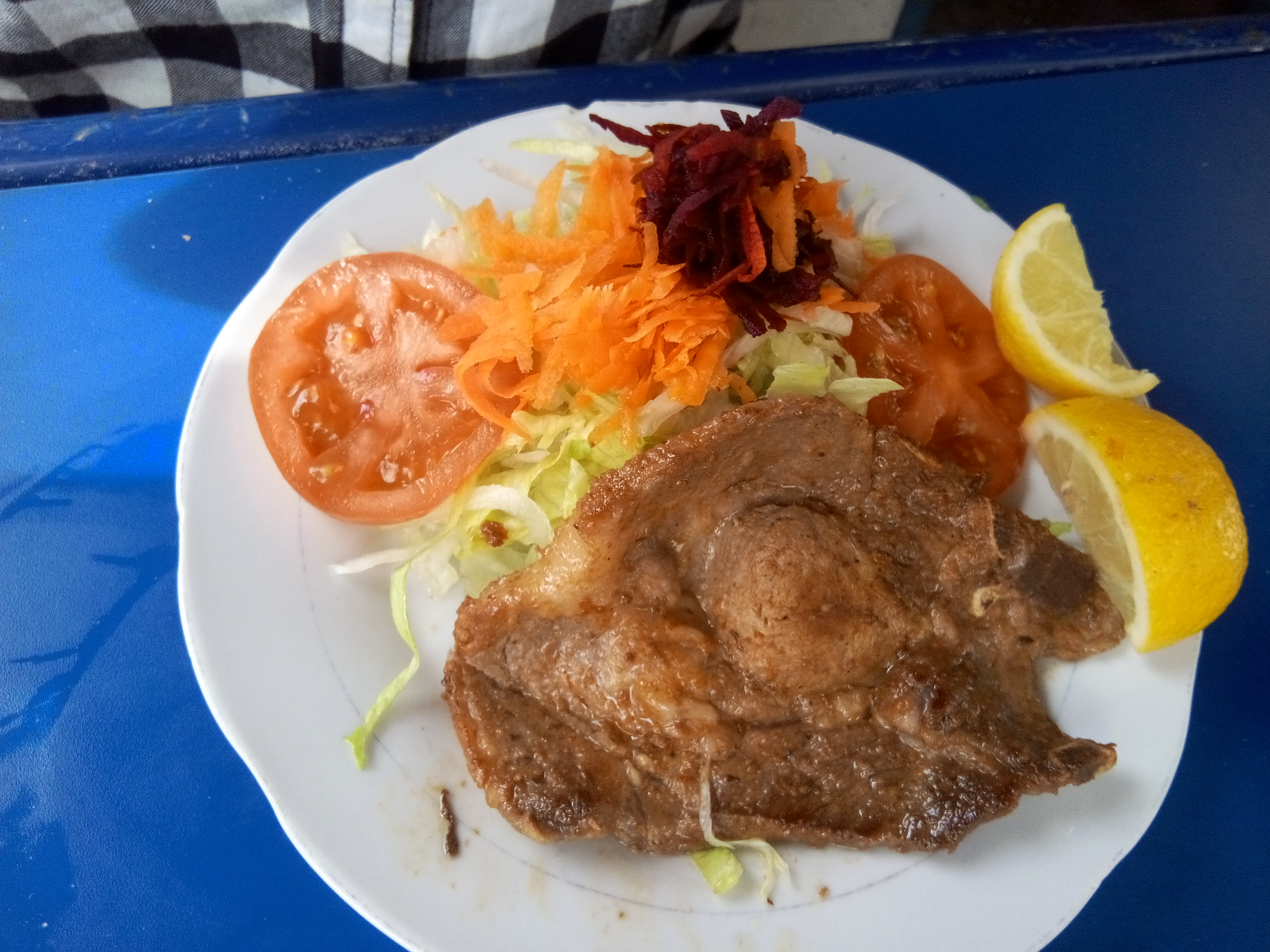 Mais le poisson ne détient pas l’exclusivité au sein des fourneaux chiliens (qui à dit : « heureusement » ?!). Comme en Argentine, la viande est excellente et très répandue. Les savoureux steack de lomo (bœuf), le poulet (principalement asado, c’est-à-dire grillé au barbecue), ou encore les chuletas (côtelettes de porc très parfumées), sont des grands classiques. Quand on a très faim et qu’on a envie d’un plat qui tient bien au corps, on peut commander sa viande « a la pobre » : le morphale ébahi verra alors arriver, pour son plus grand plaisir, un bon gros morceau de viande confortablement installé sur un lit de frites et d’oignons, et recouvert de deux œufs sur le plat. Et quand vraiment on a très faim, on peut commencer par l’incontournable des menu del dia, la cazuella (de ave ou de vacuno), un bouillon bien gras au milieu duquel trône un gros morceau de poulet ou de bœuf, accompagnés de divers ingrédients très légers comme des patates, de la semoule, du maïs, des lentilles ou encore du potiron.