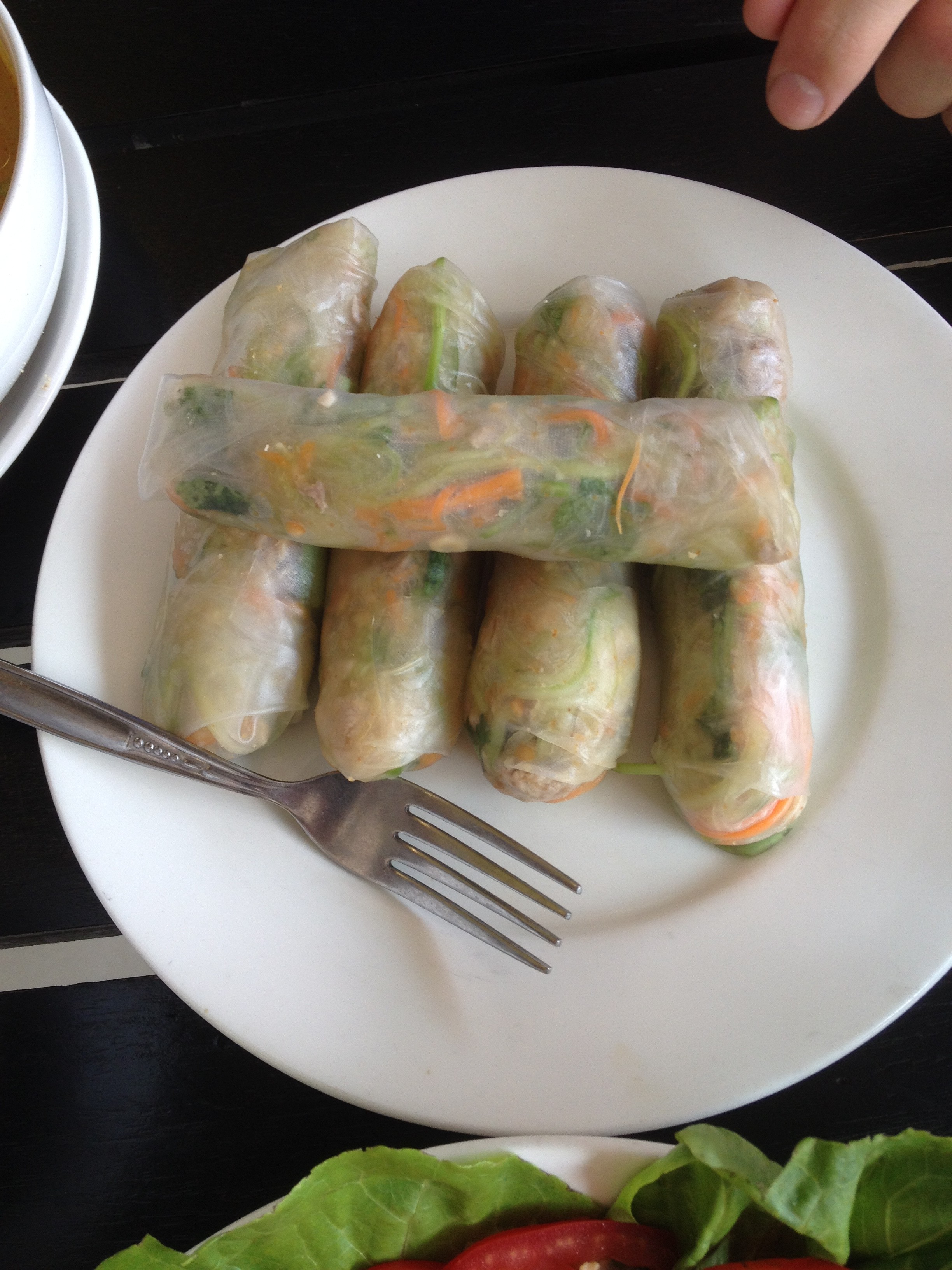 Envie de fraîcheur ? On ne peut que conseiller de déguster un Laap, la salade traditionnelle laotienne. Mais attention, c’est une salade… de viande ou de poisson ! La viande est émincée en tout petits morceaux mélangés avec de la menthe, de la coriandre, de la ciboulette, du citron vert et des piments. Le tout est servi froid, éventuellement avec quelques légumes (choux croquants, carottes émincées). Super parfumé, un peu relevé et très frais, parfait quand il fait chaud ! Et avec ça, on peut choisir une petite salade de papaye verte (Tam mak houng), ou les très vietnamiens rouleaux de printemps.