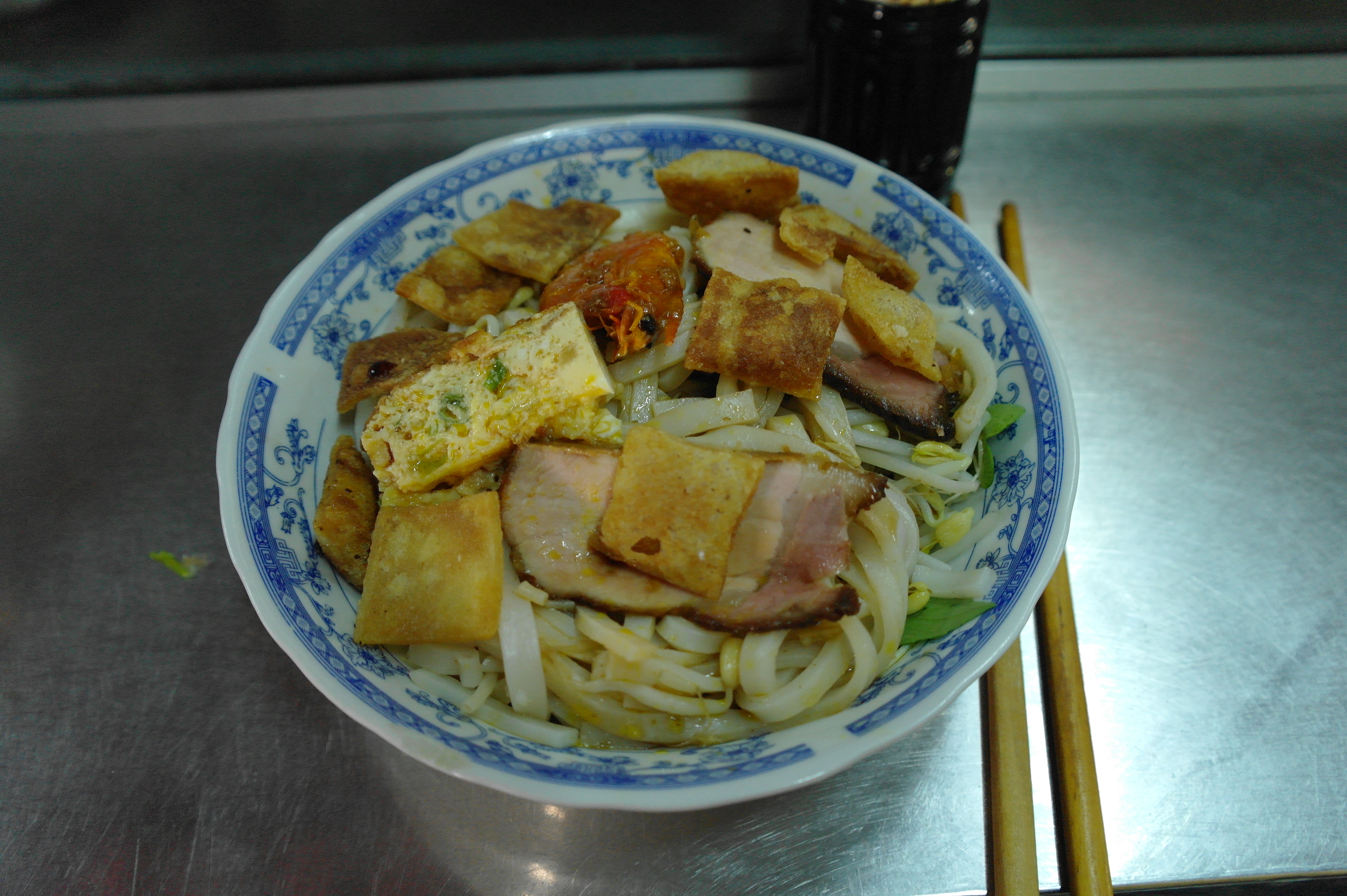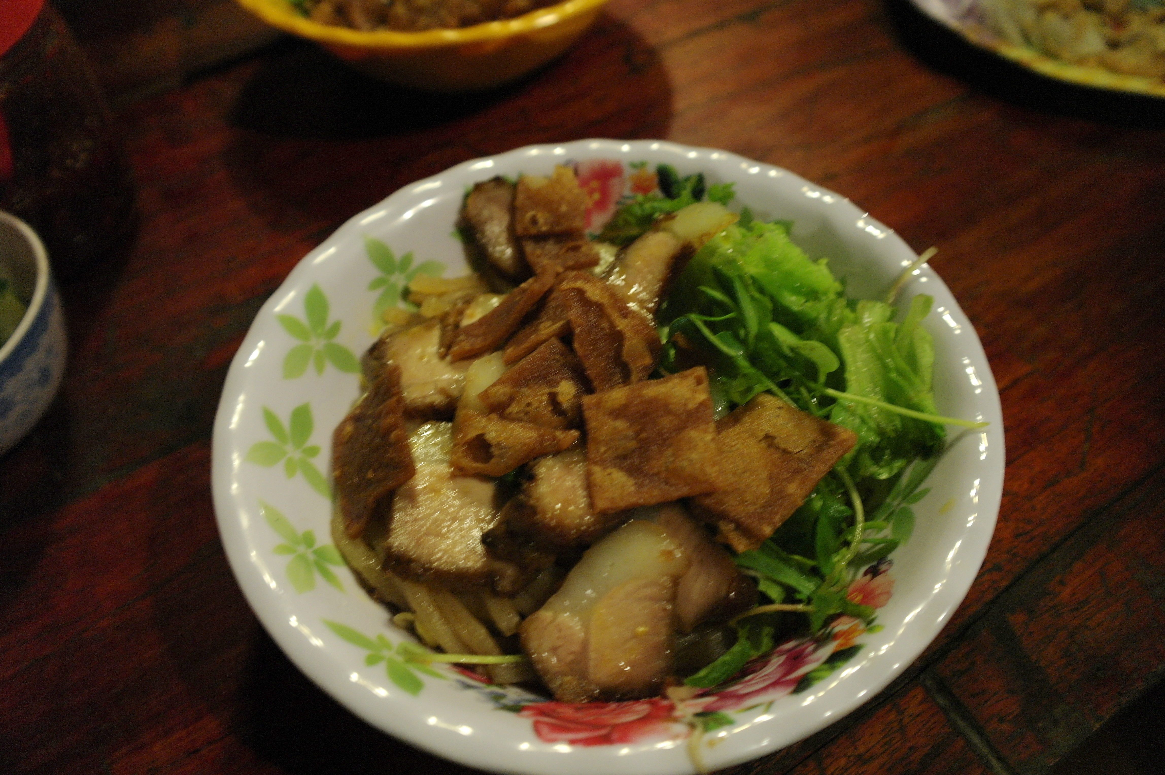 Il n’y a pas que dans les soupes qu’on trouve des noodles ! Elles sont à la base également de nombreux plats sans bouillon. En particulier, on a bien aimé le Cao Lau, spécialité du centre composée de nouilles de riz épaisses cuites avec des pousses de soja, avec du porc, des petites croquettes, de la salade et de la menthe, outre diverses herbes aromatiques.
