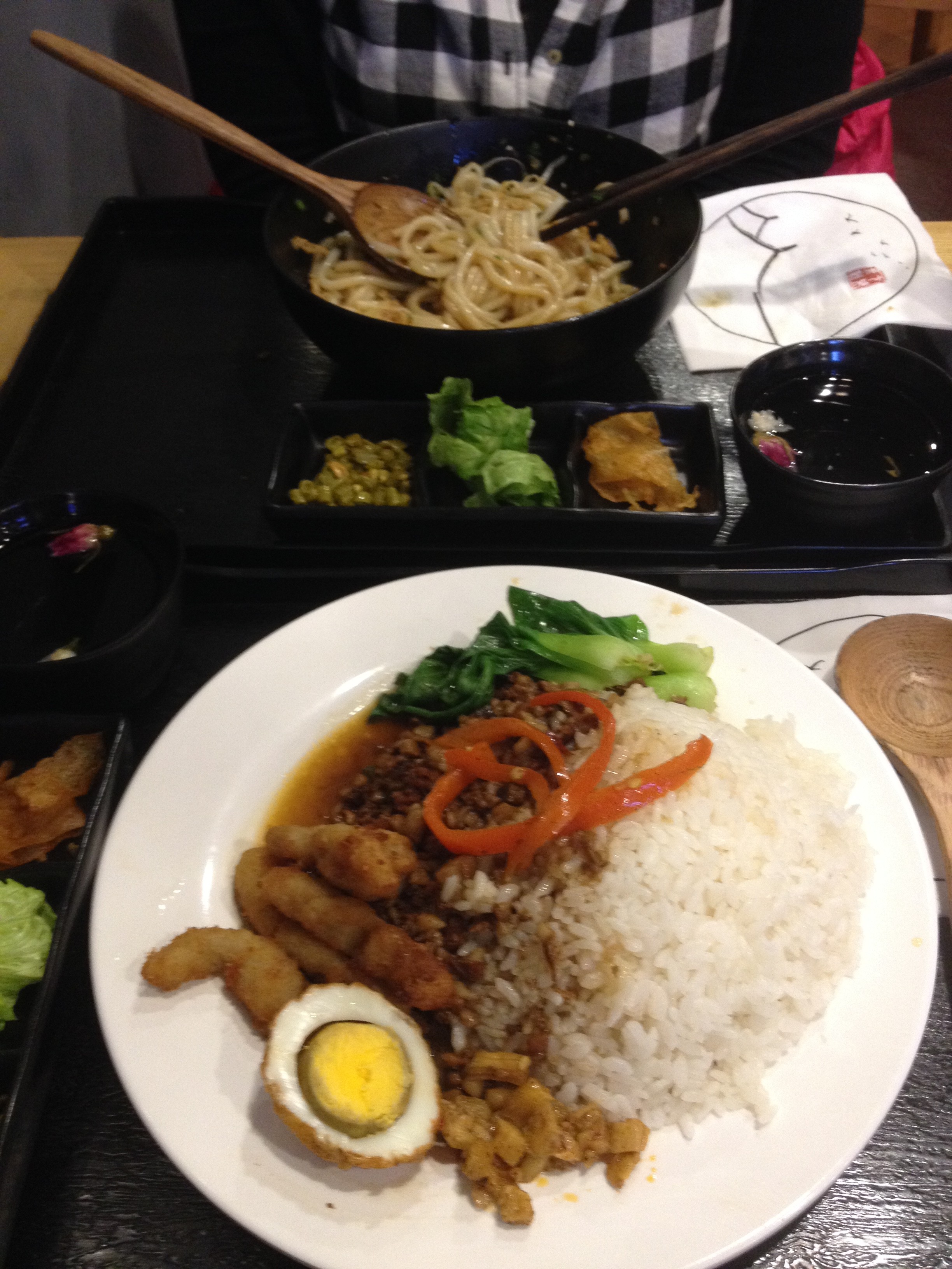 On a évidemment pas mal donné dans les classiques de la cuisine chinoise. Raviolis cuits à la vapeurs ou à l’huile, plats de « riz frit » avec diverses accompagnement, soupes de noodles à la viande (que l’on mange dans certaines régions au petit-déjeuner ; on vous avoue avoir eu un peu de mal sur ce coup là !)… Tout ça forme un peu l’alimentation de base, mais n’en est pas moins très bon !