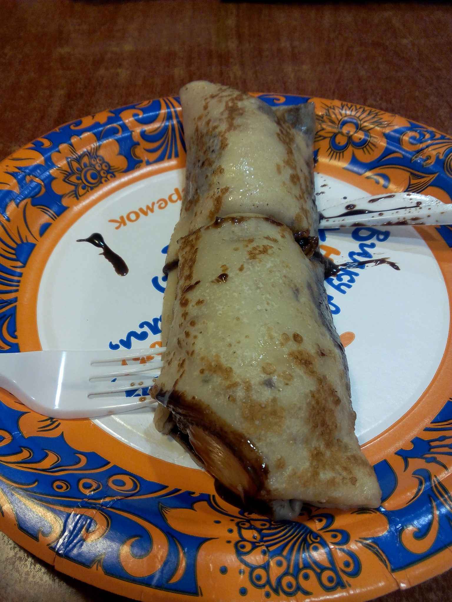 Une grande spécialité, ce sont les petits chaussons à la viande ou aux légumes, dans une sorte de pain brioché. C’est pas mal du tout ! Autre grand classique, les crêpes ! Ce sont des crêpes comme on fait en France pour des crêpes sucrées, mais ici avec une garniture qui peut aussi bien être salée que sucrée. On en goûte à la viande hachée, au saumon fumée – crème, au poulet. On aime bien et c’est consistant. On va plusieurs fois dans les fast food de la chaîne Tepemok, plutôt bons et pas chers (et validés par nos Csurfers !).