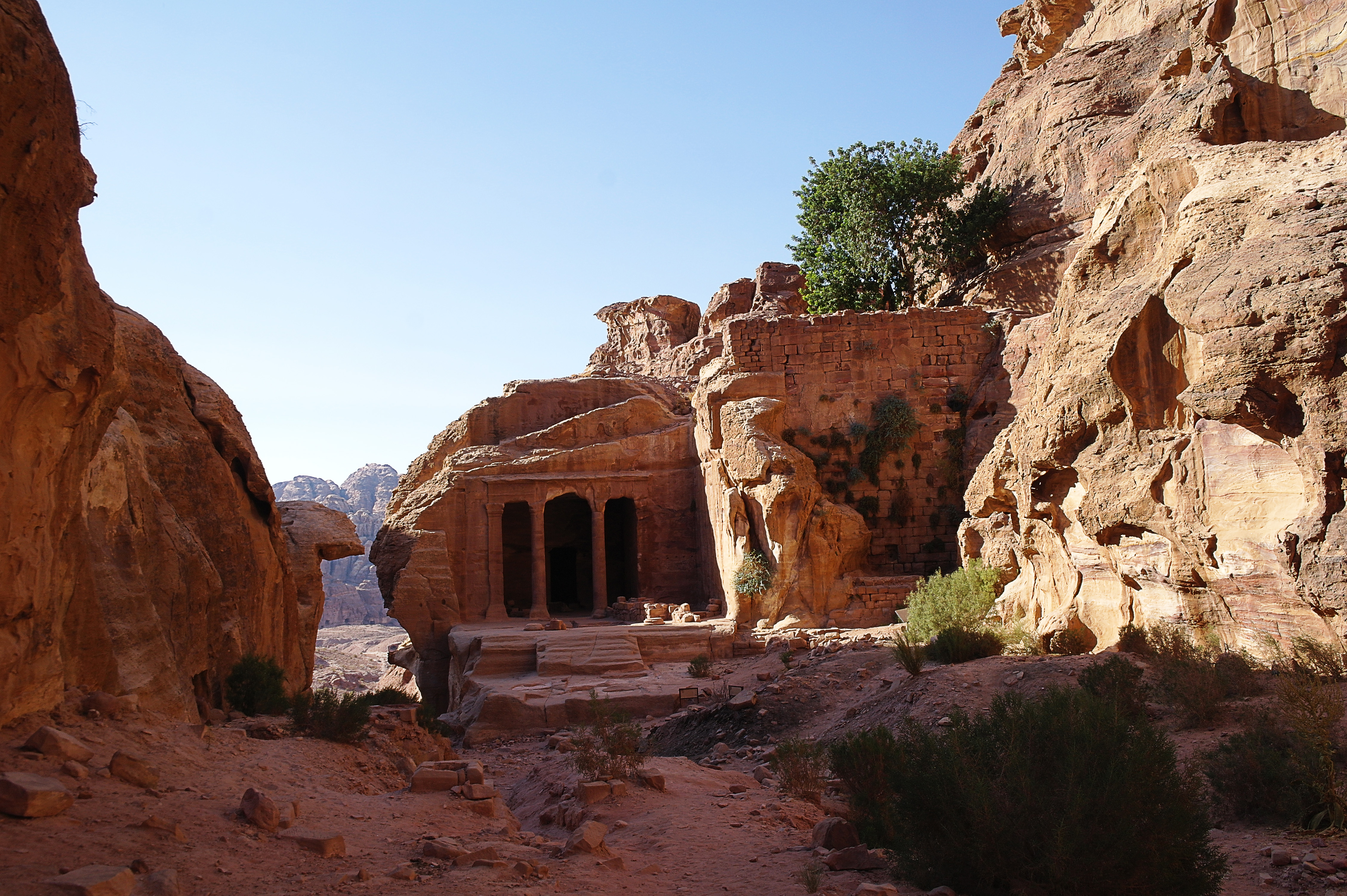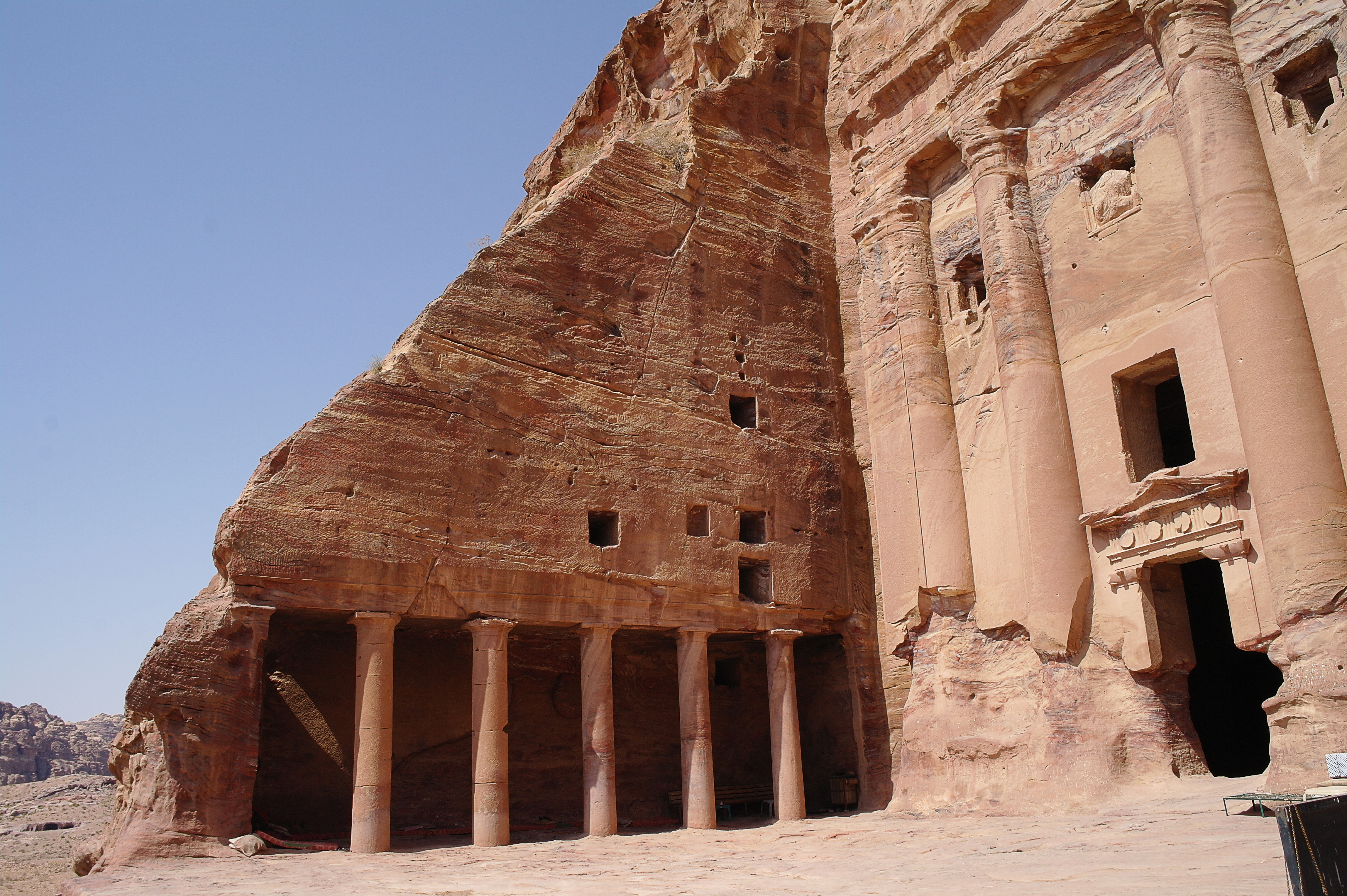 A partir de la ville romaine, il est possible de prolonger la visite en grimpant jusqu’au Monastère (Deir). Après 45 minutes de montée le long de la montagne, on arrive face à cette façade massive, qui ressemble beaucoup au Khazneh, mais en plus massif (et avec des décorations peut être moins fines). En tout cas l’endroit est idéal pour un pique-nique suivi d’une petite sieste ! On recommande aussi de suivre le chemin qui continue au delà du Monastère, qui mène, en 10 minutes à peine, à de très beaux points de vue sur les montagnes, le désert du Wadi Araba, et au delà Israël et la Palestine.