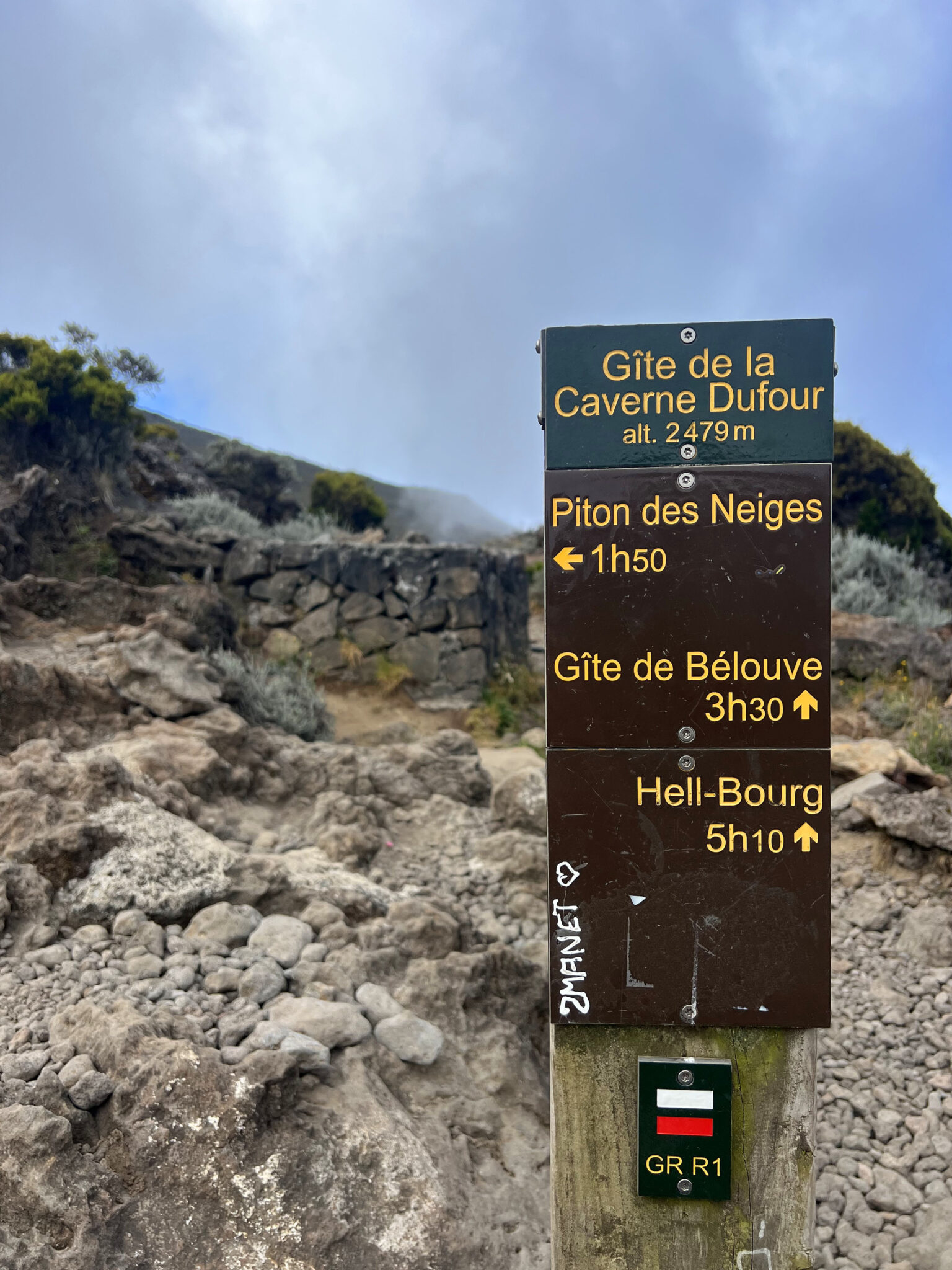 La rando se décompose en deux parties : d’abord la montée jusqu’au Gîte de la Caverne Dufour, puis de là le sentier vers le sommet. Pour la première partie, plusieurs itinéraires sont possibles, au départ d’Hell-Bourg (Cirque de Salazie), de Bourg-Murat (dans les hautes Plaines) ou encore du lieu-dit Le Bloc à Cilaos. Dans tous les cas, avec des distances et des dénivelés variables on finit par atteindre le gite de la Caverne Dufour : au-delà le sentier est le même pour tous jusqu’au sommet.