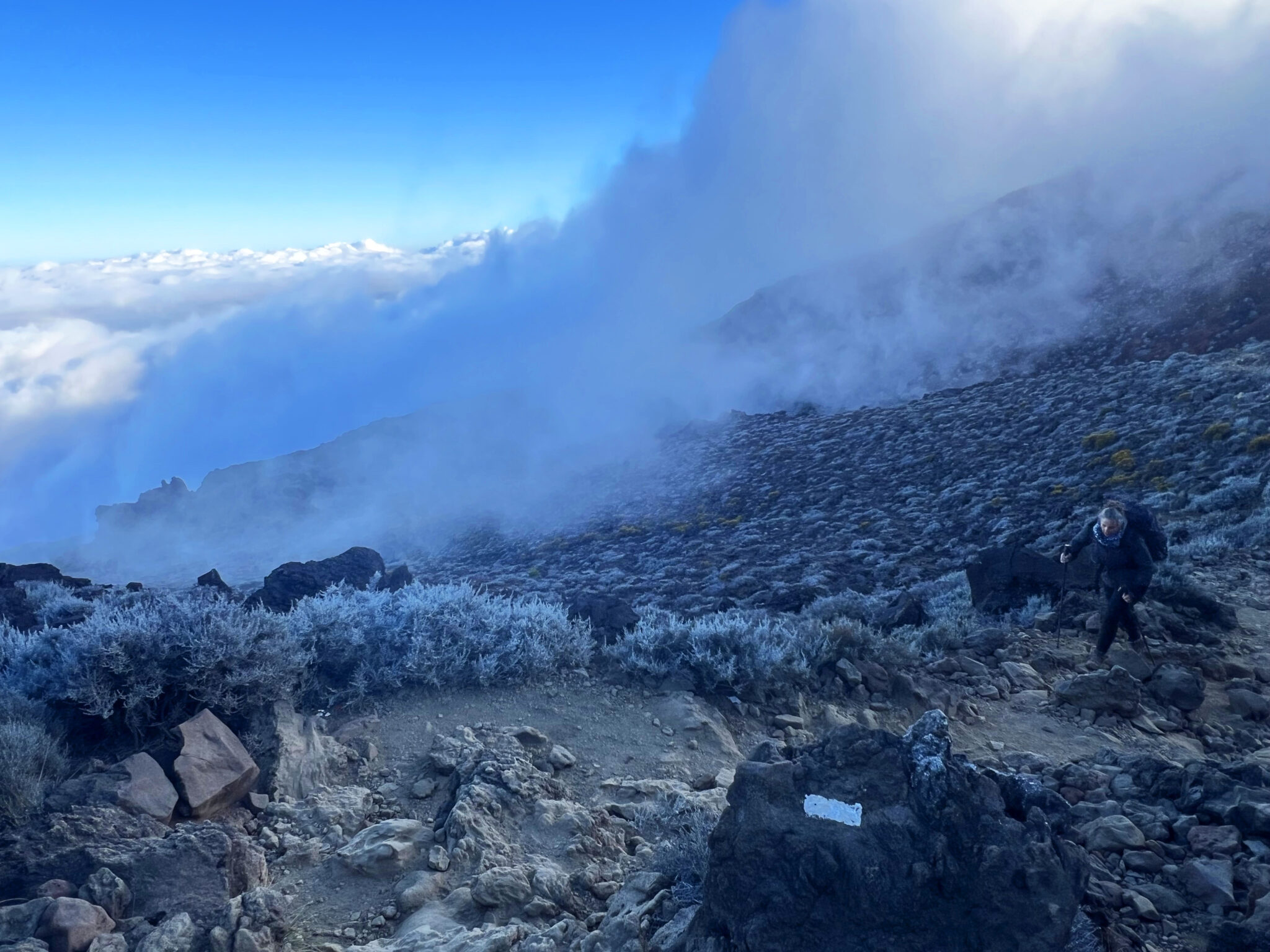 Pour ceux qui partent sur deux jours, il y a encore deux possibilités : la première est de ne monter le 1er jour que jusqu’au niveau du gîte de la Caverne Dufour et d’y passer la nuit (au gîte lui-même mais qui est quand même très bas de gamme y compris pour un refuge de montagne, ou alors en campant à côté), puis de rejoindre le sommet le lendemain matin (départ 3h’ pour être en haut pour le lever de soleil) avant de faire toute la redescente dans la foulée.