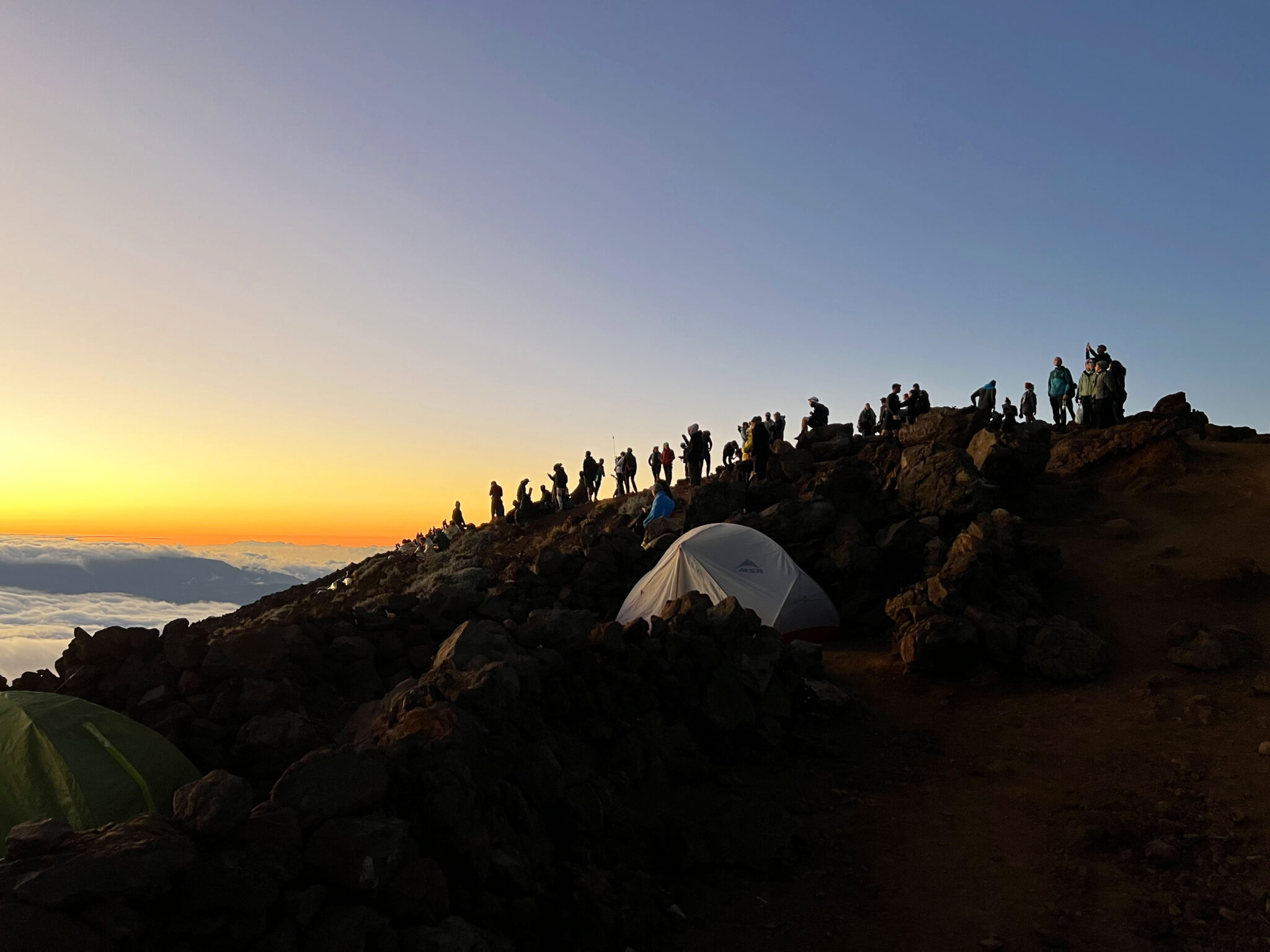 Certains font l’aller-retour dans la journée, et pas seulement les trailers qui le font en courant, en rando c’est faisable aussi puisqu’en marchant légers il faut compter environ 5h à l’aller et 3h30 au retour. Beaucoup choisissent de faire la rando de nuit pour être en haut pour le lever de soleil, ce qui donne un départ vers minuit et un retour vers 10h : impensable pour nous, vu que la nuit, on dort !
