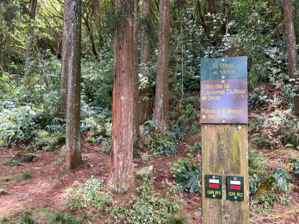 Pour notre part on a choisi de partir du bloc, à proximité du village de Cilaos sur la D 241. De là, il faut compter à peine 8 kilomètres de distance (aller simple), mais quasiment 1700 mètres de dénivelé : on monte tout le temps, et c’est raide !