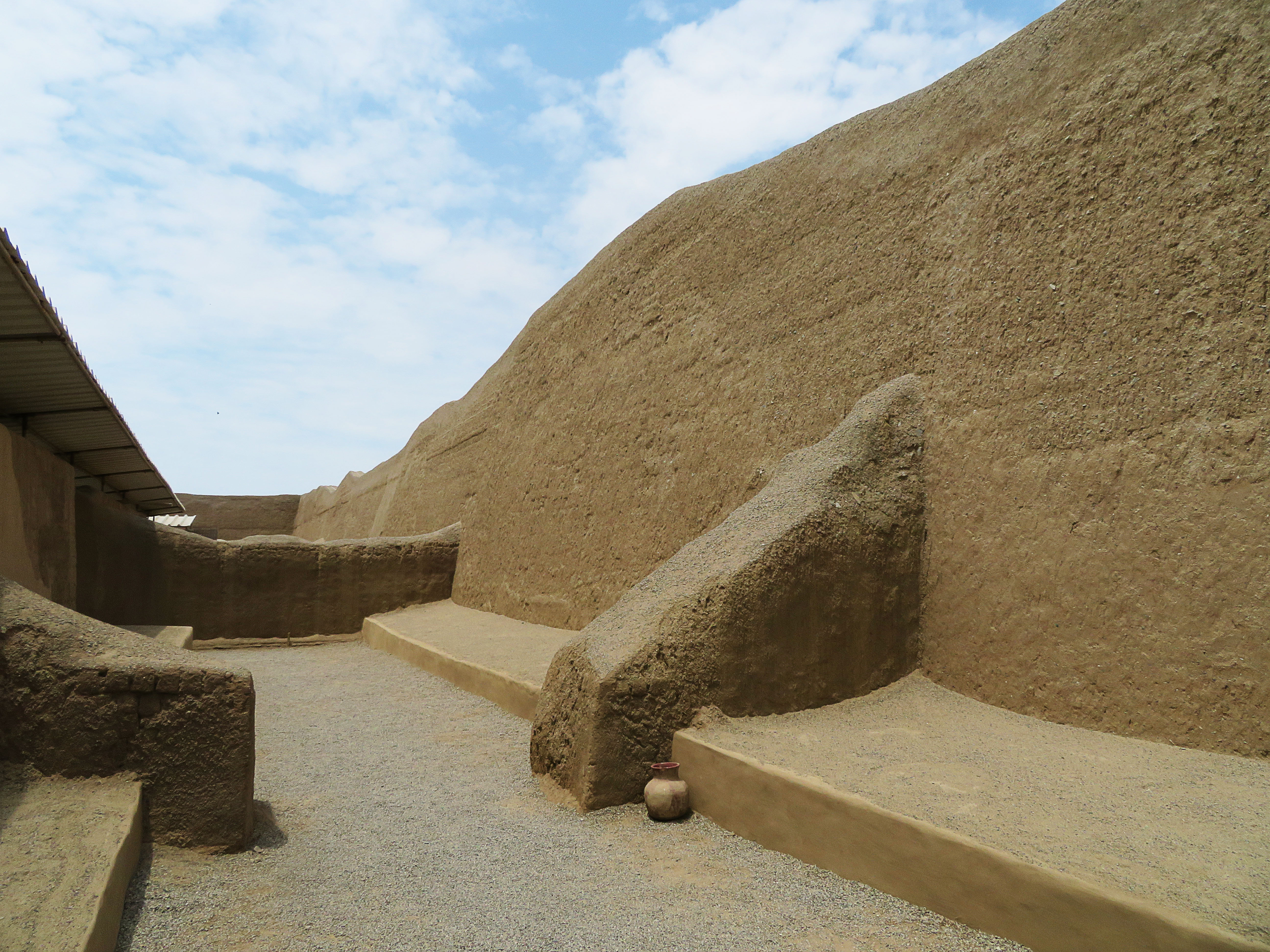 Ils avaient construits à proximité de l’actuelle Trujillo et à quelques kilomètres de la mer, une importante cité dominée par deux vastes temples pyramidaux (des « Huacas »). La Huaca del Sol avait un rôle politique et ne se visite pas car les fouilles commencent tout juste, contrairement à la Huaca de la luna, dont le rôle était religieux. La visite guidée dure une heure et est très intéressante. On y apprend que le temple a été construit en 5 couches successives qui se superposent au fil des siècles. On y admire de belles sculptures, peintures et bas reliefs et on en apprend plus sur les rites qui étaient pratiqués (notamment les combats rituels et… les sacrifices humains !).