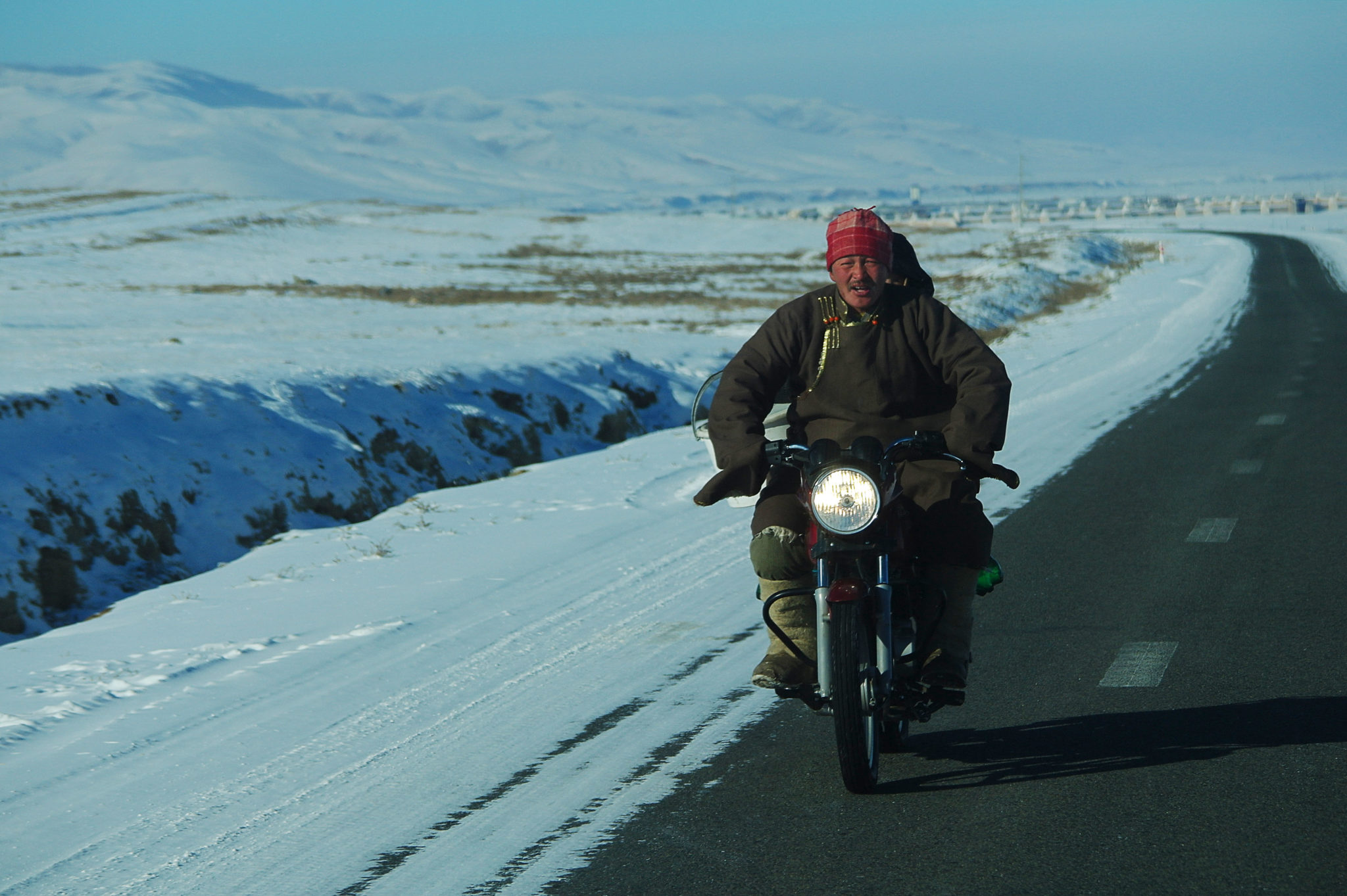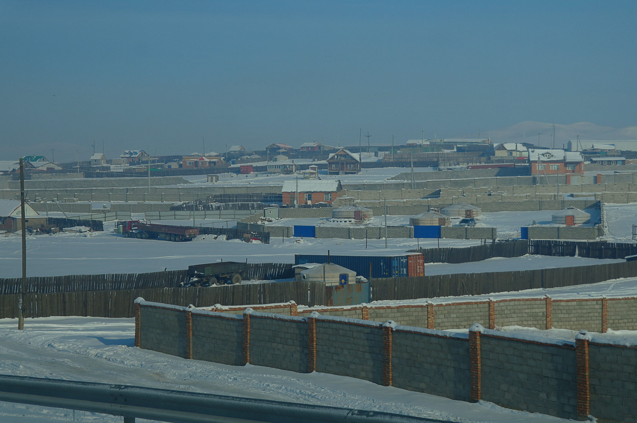 Côté météo, on se gèle grave ! On croyait avoir découvert en Sibérie, par -15°, ce qu’est le froid. A Oulan Bator, par -25°, -30°, là on apprend ce que c’est ! Même bien couverts, après quelques minutes dehors, c’est vraiment dur ! Les oreilles piquent, les doigts brulent, on court vite se mettre au chaud !