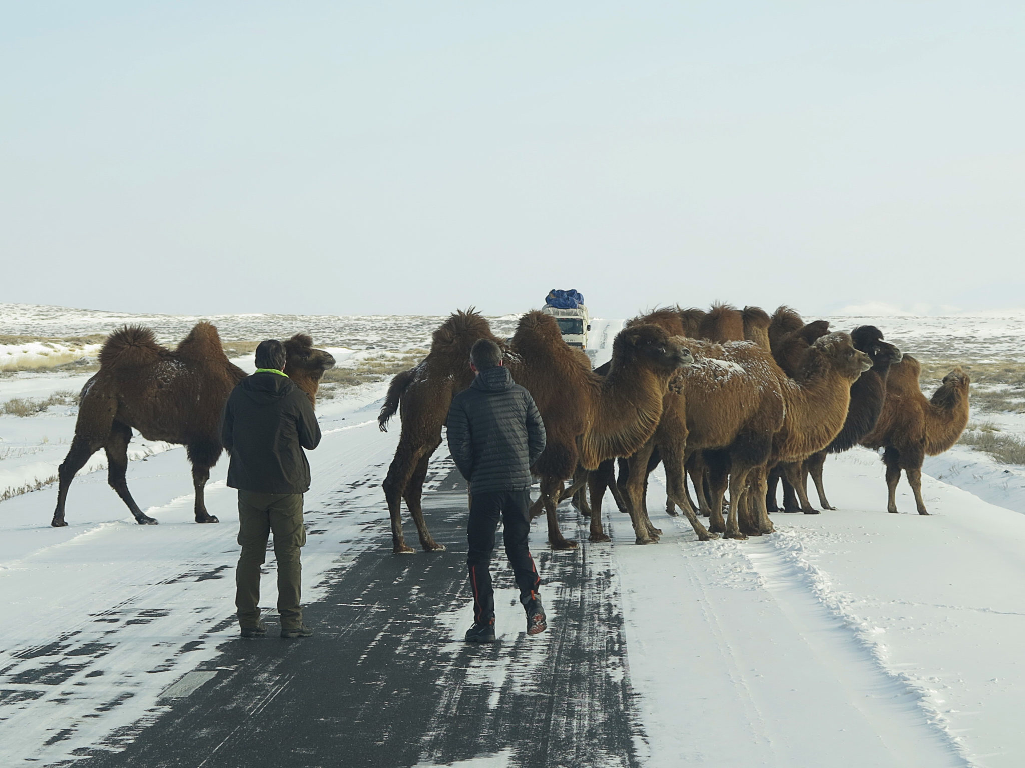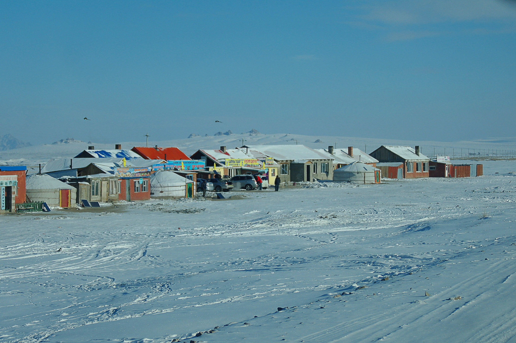 Après une deuxième soirée passée autour d’une nouvelle bouteille de vodka et d’une partie de Yam endiablée, on reprend finalement la route d’Oulan Bator, heureux de ce premier aperçu des étendues (seulement 400 km depuis Oulan-Bator) de la Mongolie, et décidés à revenir un jour pour un long tour de Mongolie (en été !), du désert aux montagnes !