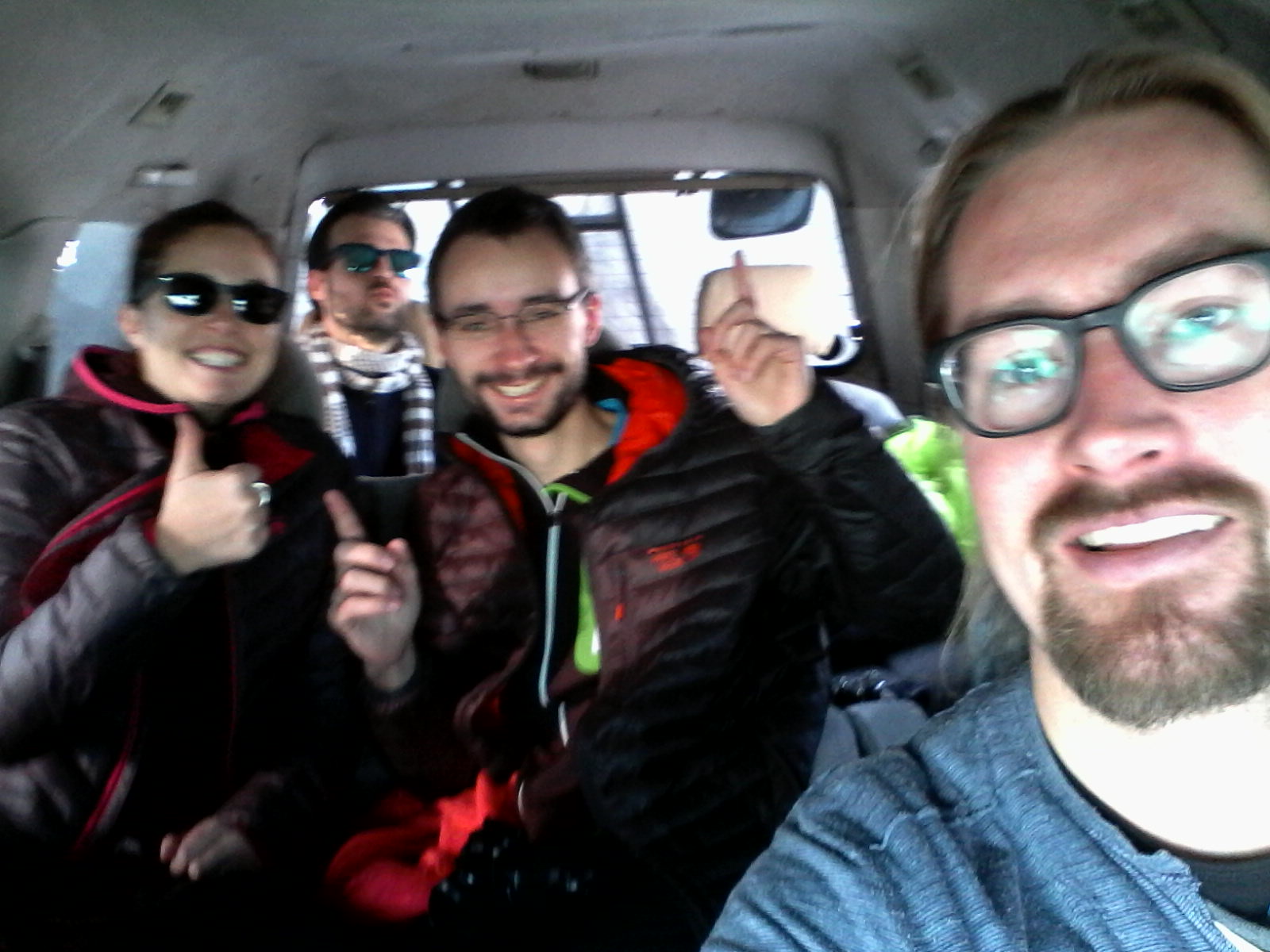 Le passage de la frontière est un peu fastidieux. Côté Russe, après un premier contrôle rapide des passeports dans le bus, il faut descendre du bus, en récupérant les bagages de la soute, puis passer à pied avec tout son paquetage un nouveau contrôle des passeports et le scanner des bagages. Les sacs bipent au scanner, mais c’est pas grave, on nous fait quand même passer sans plus de vérification… à quoi bon ? Ne pas chercher à comprendre !Etape suivante, les douaniers prennent un air concentré en ayant l’air de vérifier des trucs supers importants sur nos passeports, avant de nous laisser passer. Jusque là rien de spécial, on reprend nos sacs, on remet tout dans la soute, on reprend place dans le bus, et hop c’est reparti. Ah non, en fait, parce qu’on se fait à nouveau vérifier les passeports dans le bus…par un officier Russe. Mieux vaut deux fois qu’une !