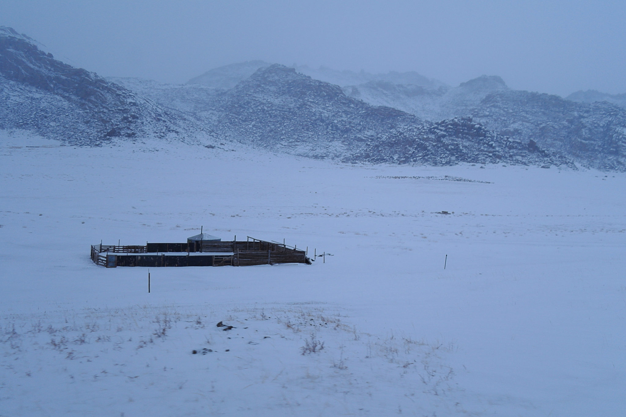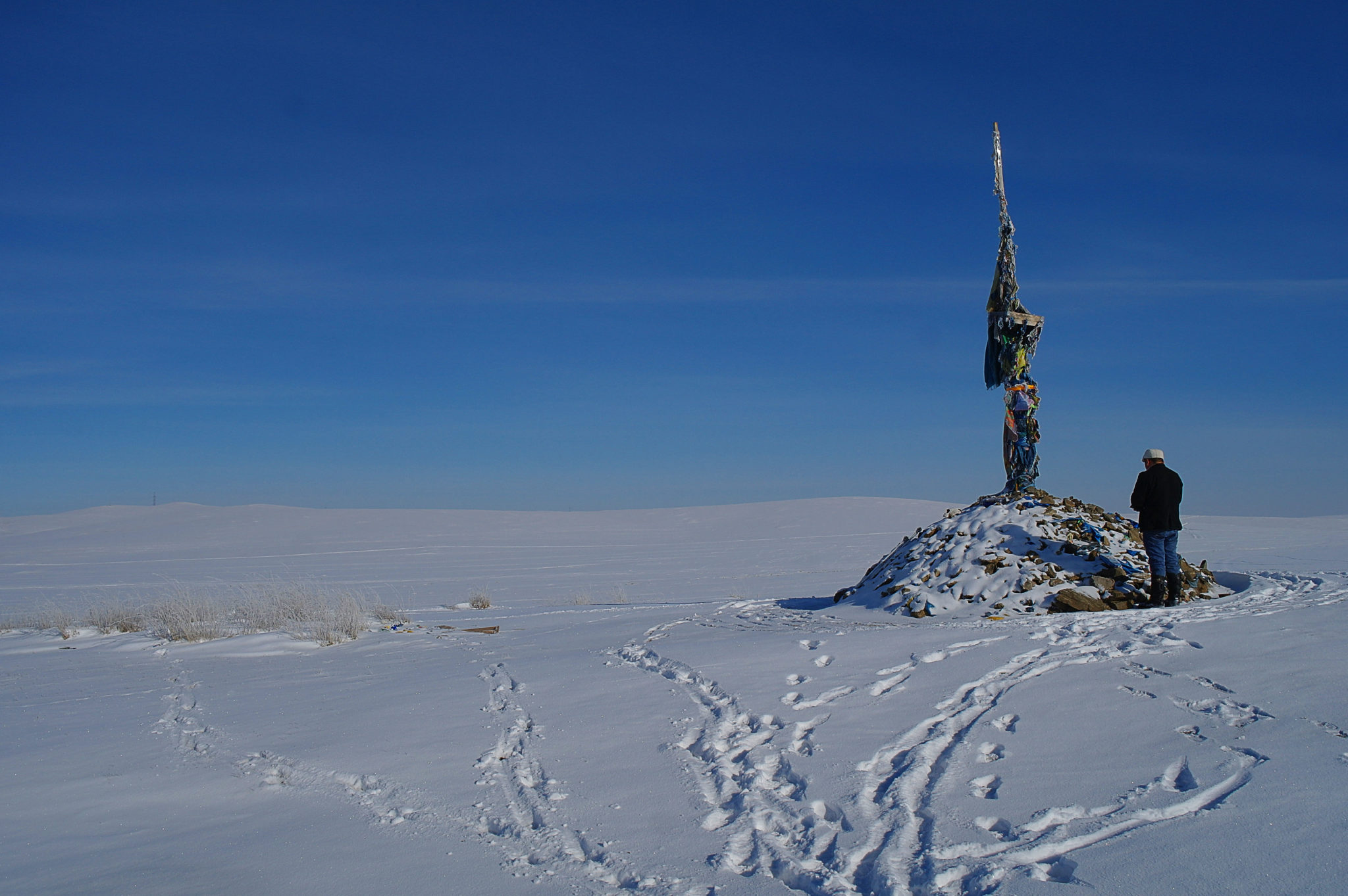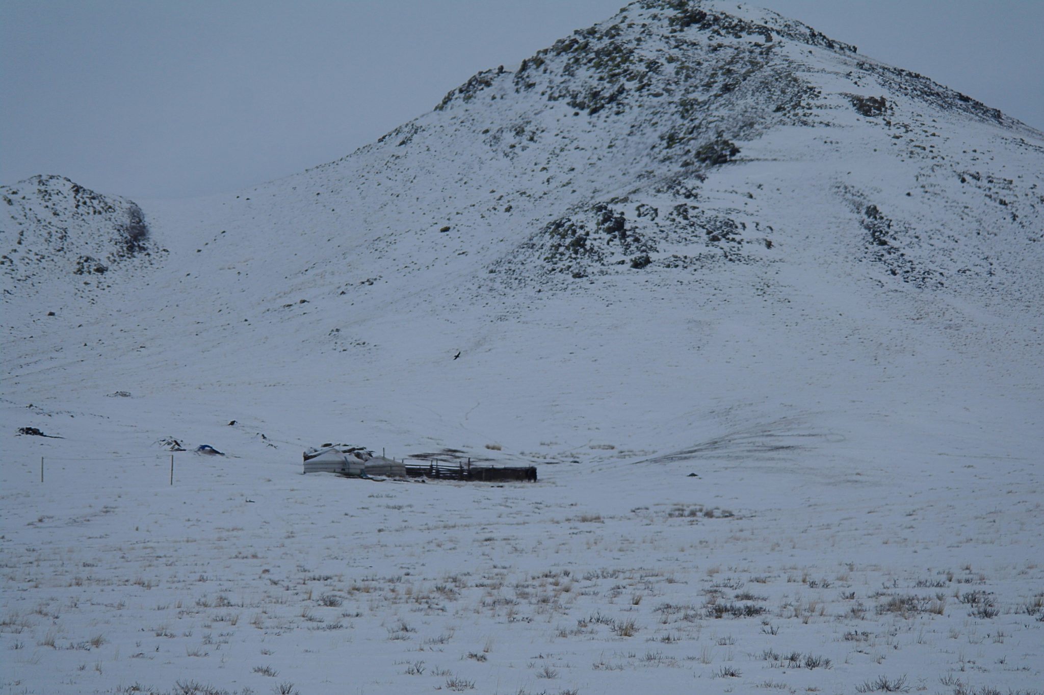 C’est au fin fond de nulle part : pour y accéder, il faut purement et simplement sortir de la route et se lancer à travers les steppes enneigées pendant des kilomètres. Pour nous ça tient du miracle, mais Sonio se repère et on finit par arriver à bon port.