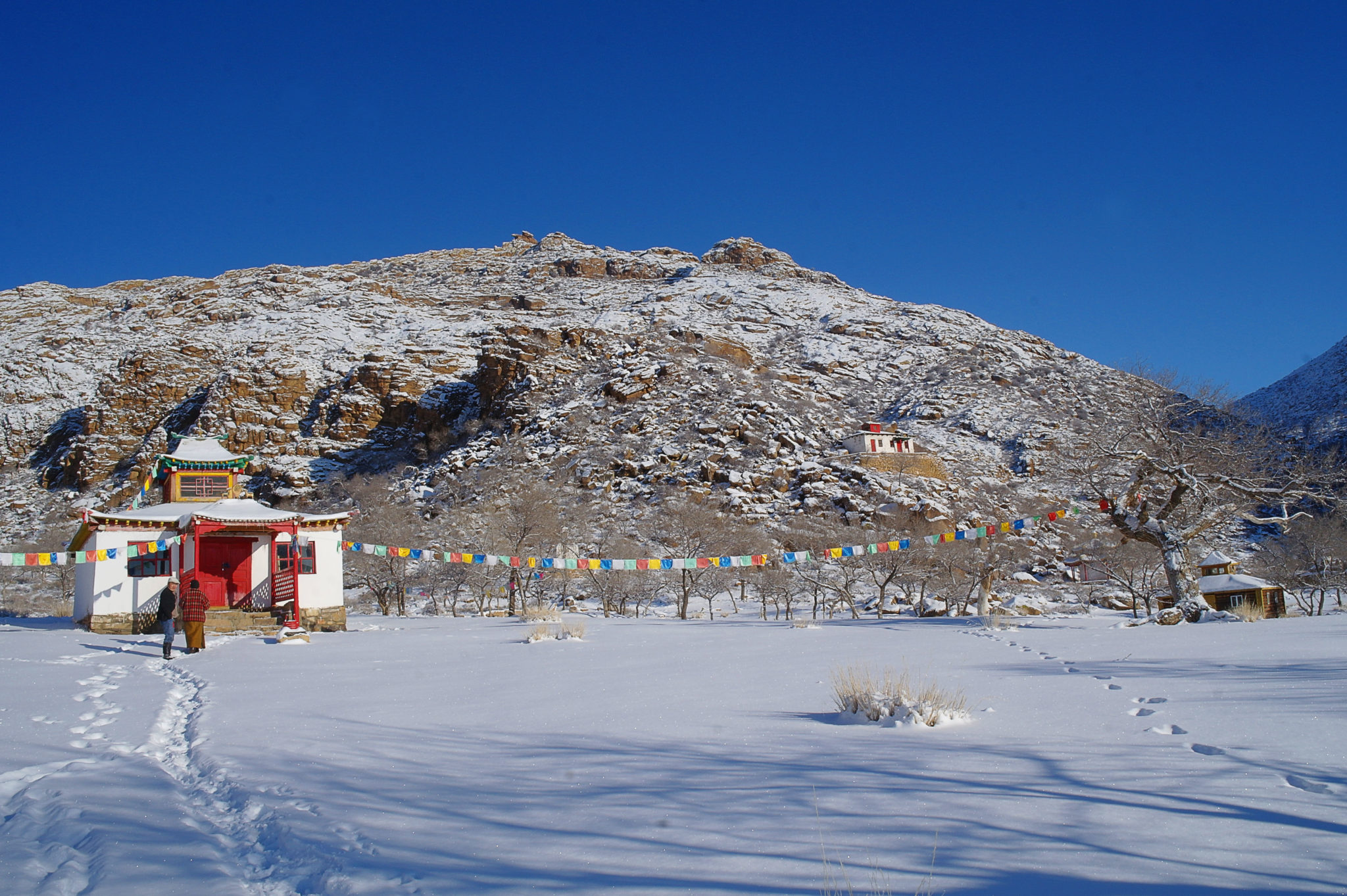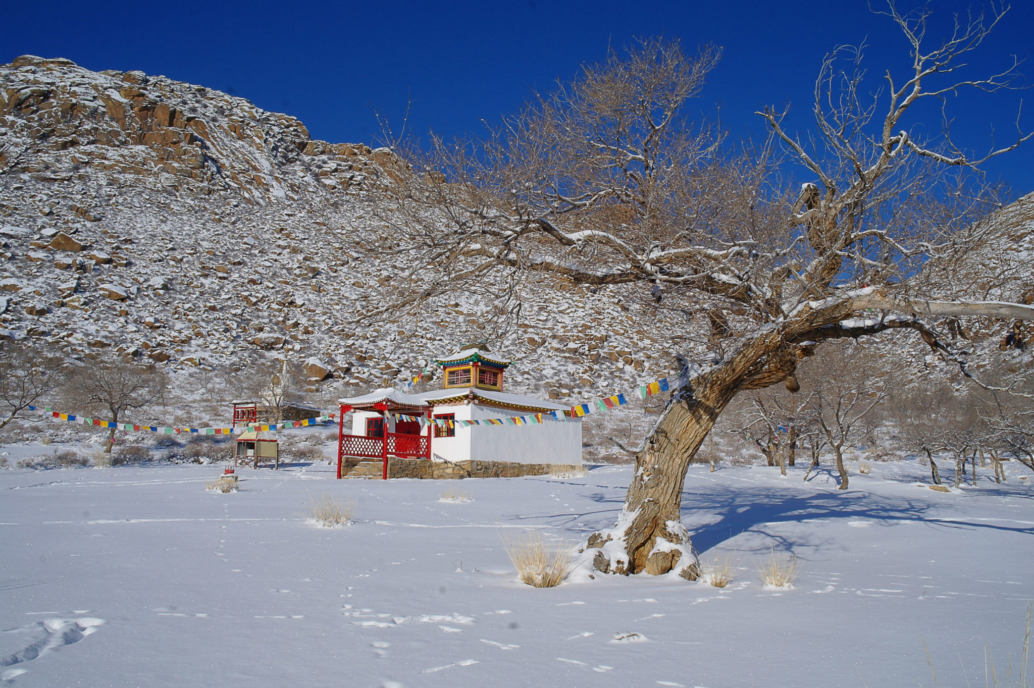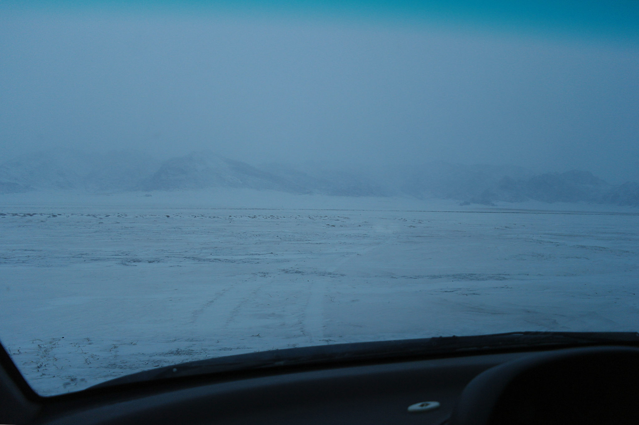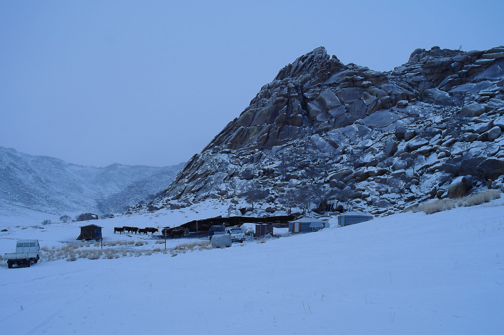 C’est au fin fond de nulle part : pour y accéder, il faut purement et simplement sortir de la route et se lancer à travers les steppes enneigées pendant des kilomètres. Pour nous ça tient du miracle, mais Sonio se repère et on finit par arriver à bon port.